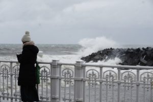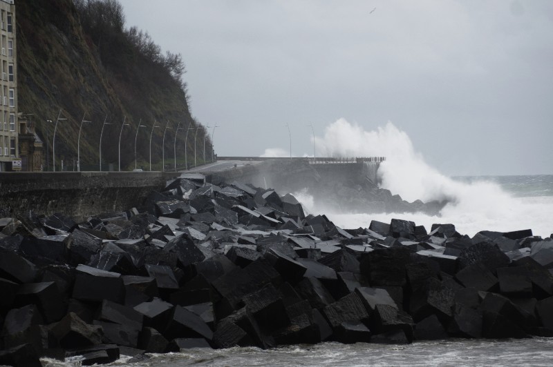 El oleaje es fuerte, si bien se espera que esta tarde durante la pleamar lleguen los momentos de mayor intensidad. Los paseos marítimos de Donostia y otras localidades costeras como Zarautz permanecen cortados. Y vías importantes del Territorio como la carretera que une Urnieta y Lasarte-Oria a causa de la caída de un árbol.