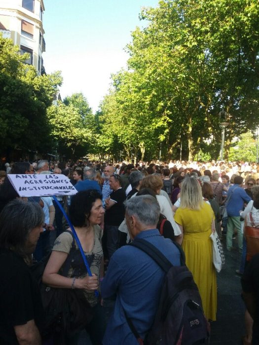 La Asamblea Feminista de Donostia ha sido la organizadora de la manifestación, que ha tenido ecos a lo largo de todo el Estado. Hoy los cinco miembros de La Manada han abandonado sus respectivas prisiones y se han dirigido a Sevilla, donde ya dormirán en sus casas.