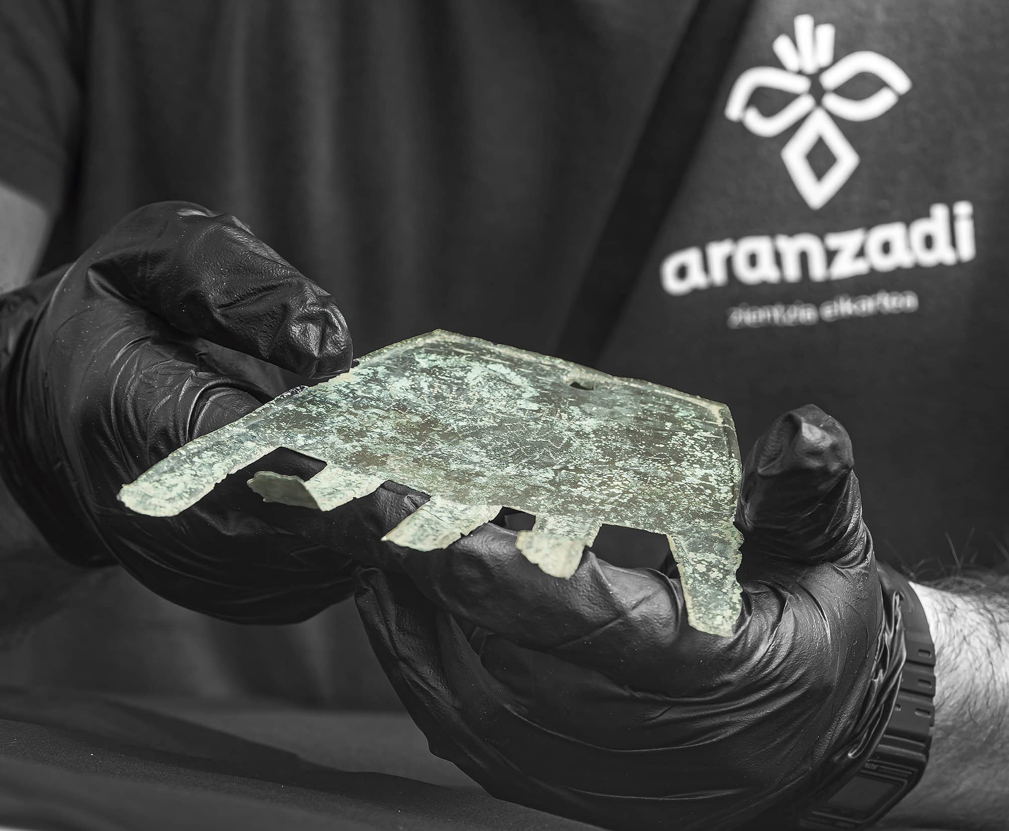 “Sorioneku” (de buena fortuna), dice la primera de las cinco palabras que ha podido ser descifrada en la que ya se conoce como la “mano de Irulegi”. Se trata de una representación en bronce de esa extremidad, diseñada para colgar en la puerta de entrada de una casa, probablemente a modo de objeto ritual protector del hogar.