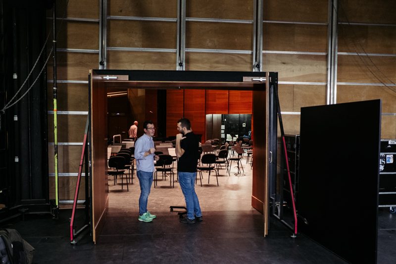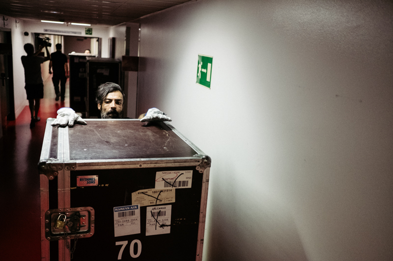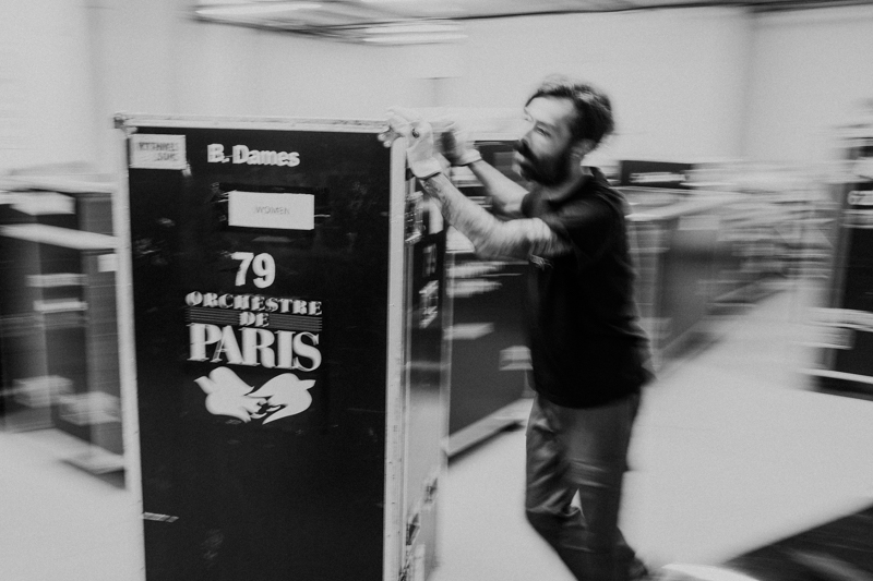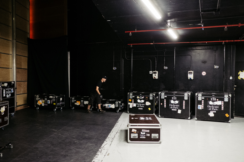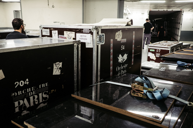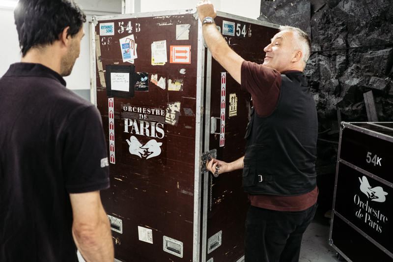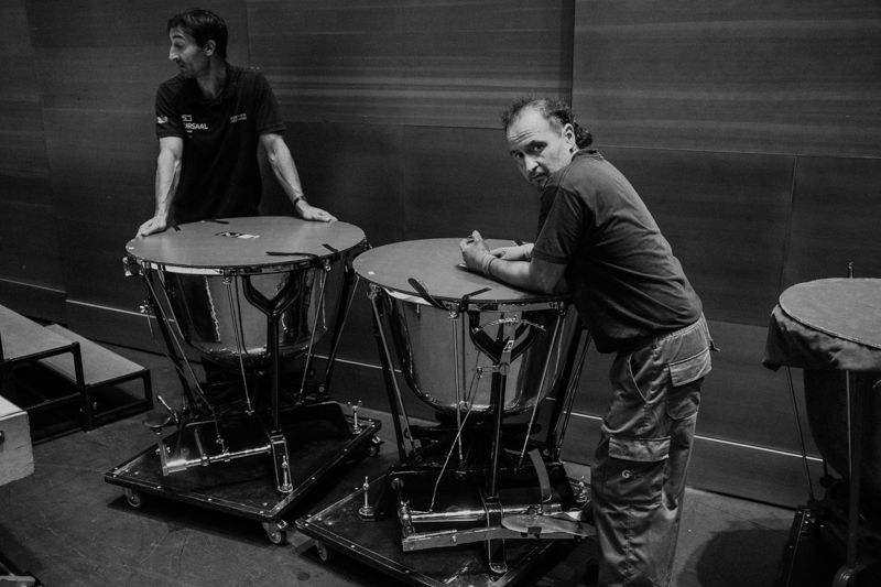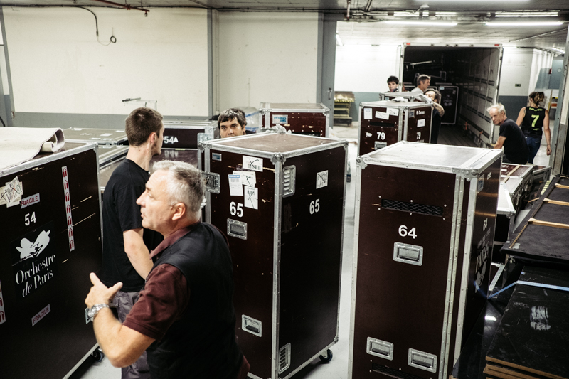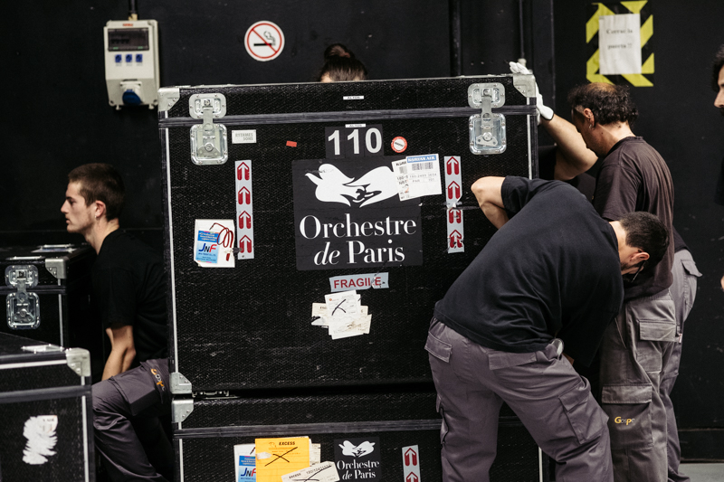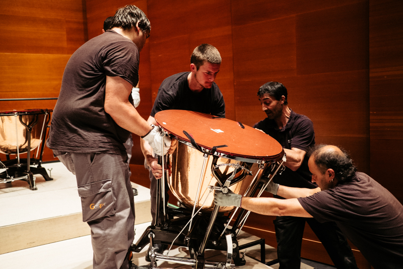 No sólo hay horas y horas de ensayos tras unos conciertos como los que da la Orquesta de París en Donostia. Hay también una labor de montaje que también requiere una afinación perfecta. Es lo que se ha visto esta tarde en los pasillos del Kursaal antes del concierto.
