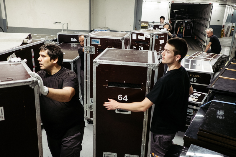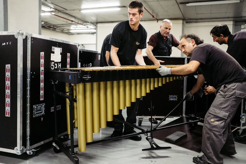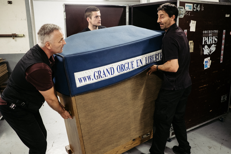A partir de ese momento comenzó una labor intensa de desembalaje, primero, y montaje después a cargo de los operarios que venían desde Francia acompañando a los músicos.