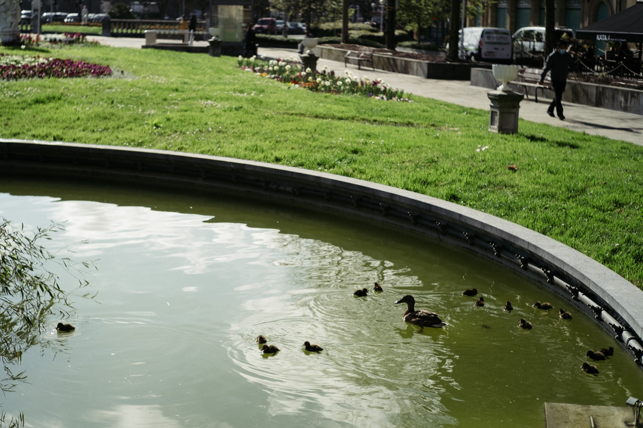 Dicen quienes la tienen ‘fichada’ que es el cuarto año que esta pata azulona elige la fuente junto al Hotel María Cristina, en la plaza Santa Catalina, para sacar adelante a su prole, un entorno muy urbano donde sin embargo se siente como en casa y donde ya vuelve a verse la tierna imagen.
