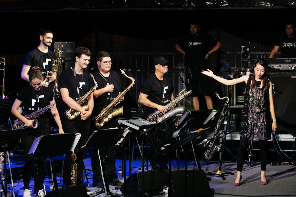 Le precedió en el escenario de la plaza de La Trinidad su compatriota Miho Hazama, que dirigió a la Musikene Summer Big Band, integrada por alumnos de la Escuela Superior de Música del País Vasco, que dieron cuenta de su profesionalidad con una selección de temas de la propia Hazama y de arreglos de canciones de Duke Ellington, Herbie Hanckok y Thelonious Monk.