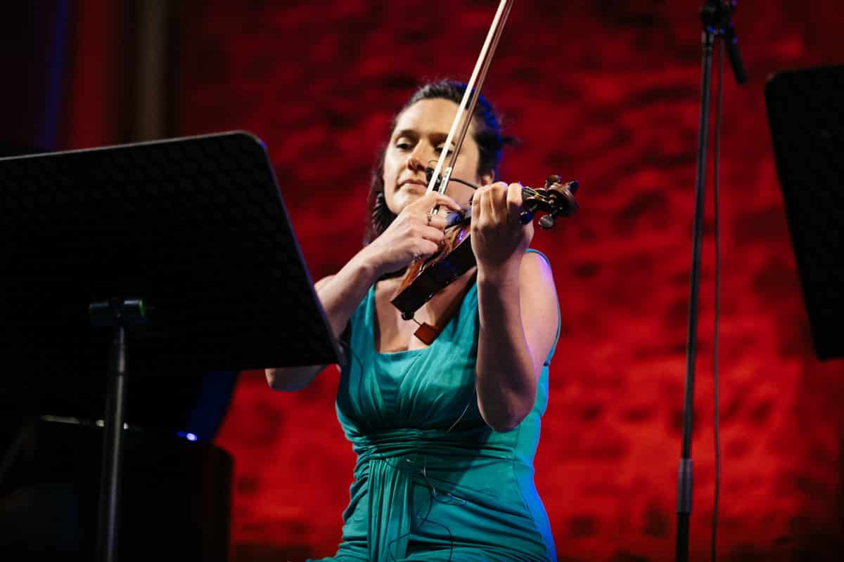 Este viernes llegó a la Plaza de la Trinidad acompañada de un cuarteto de cuerda integrado por Rakvinder Singh (violín), Shlomy Dobrinsky (violín) Meghan Cassidy (viola) y Gabriela Swallow (cello) con el que ha interpretado «Silver Linning», una obra que compuso en pandemia, según ha explicado.