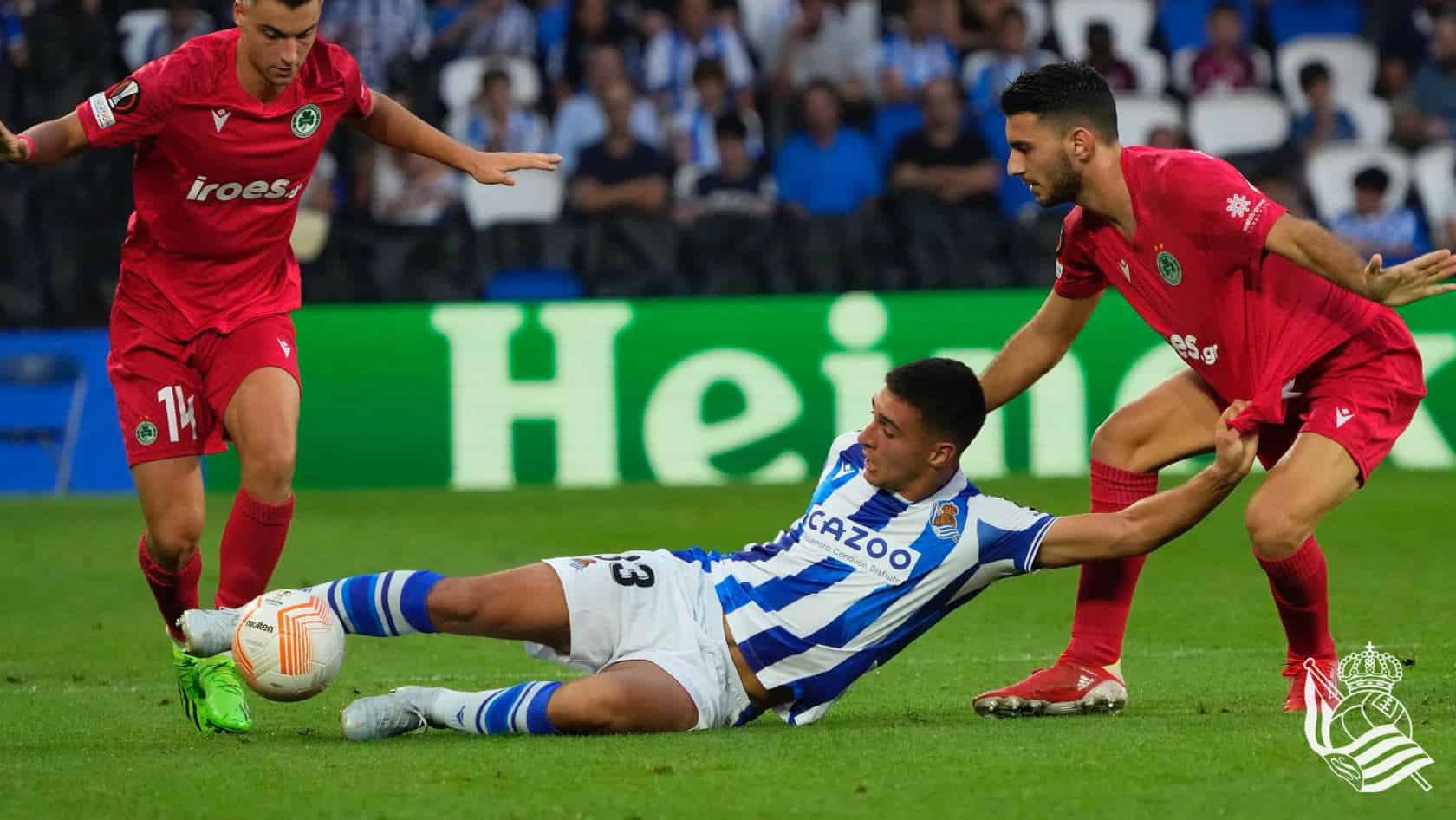 El once guipuzcoano buscó el segundo en toda ocasión que pudo. El Omonia no parecía descontento con la derrota por la mínima y sufrió la desgraciada lesión del español Héctor Yuste, que se quedó sin su sueño de poder completar los 90 minutos.
