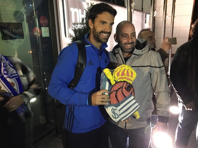 La Real Sociedad llegó ayer a Gijón para enfrentarse esta tarde a las 18.30 horas al Sporting en El Molinón. La expedición txuri urdin aterrizó en el Aeropuerto de Asturias a las ocho de la tarde, en un vuelo que partió de Hondarribia. El equipo se alojó en el hotel de concentración, donde fue recibido por una gran representación de aficionados realistas. La convocatoria de esta tarde está formada por: Rulli, T. Ramírez, C. Martínez, Aritz, Mikel, I. Martínez, Raúl Navas, Yuri B., Illarra, Zurutuza, Granero, Canales, X. Prieto, Carlos V., Oyarzabal, D. Concha, Willian J. y Juanmi. El equipo blanquiazul regresará a Donostia en autocar tras la conclusión del choque, que será reñido. No en vano los locales buscan desesperadamente una victoria para no hundirse mientras los txuri urdin siguen muy cerca de los puestos europeos.