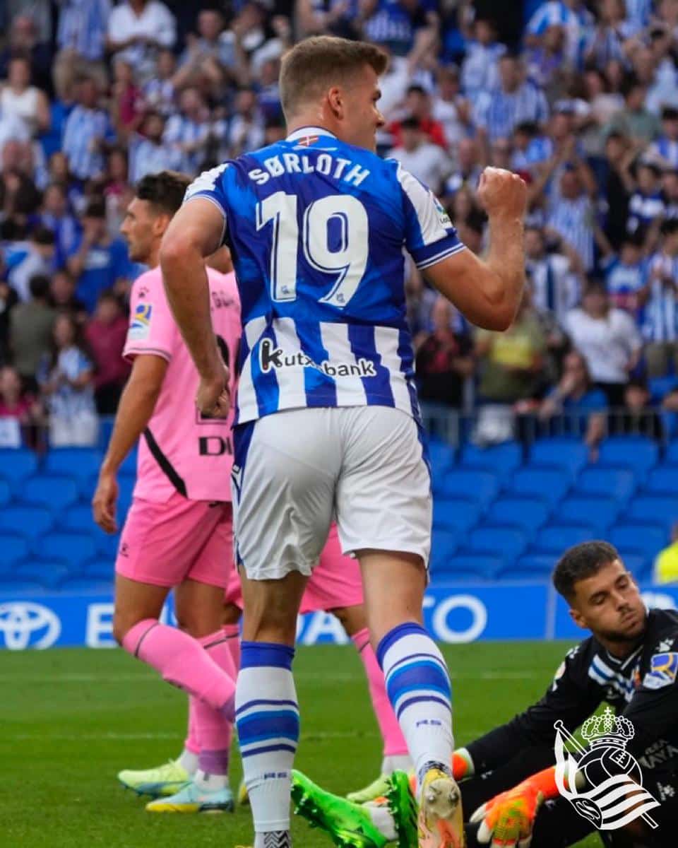 Muy poco duró la alegría en el Reale Arena ya que en la siguiente acción, con las gradas festejando el tanto del gigante Sorloth, llegó el empate en un gran disparo de Edu Expósito desde fuera del área que sorprendió a Remiro.