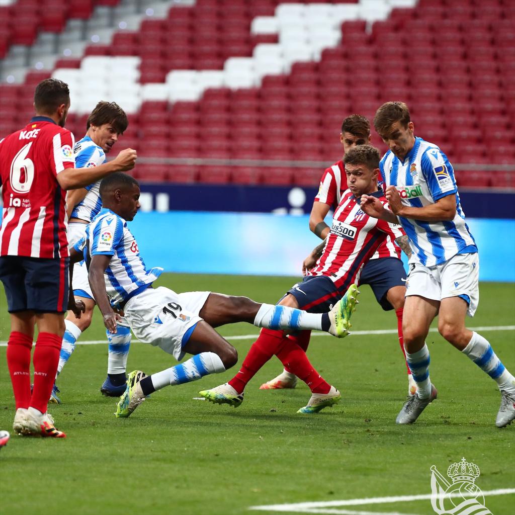 La primera mitad ha sido tensa entre ambos equipos y un gol de Koke ha adelantado a los colchoneros. Sumado este detalle, importante, hay que reconocer que la Real no terminaba de encontrarse en el campo del rival y sólo ha gozado de una buena ocasión ante Oblak, en un balón suelto dentro del área que Isak no ha logrado enviar entre los palos.