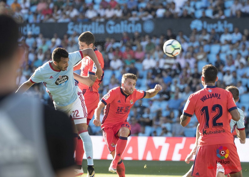 Los txuri urdin fueron a rebufo de un jugador del equipo gallego, Maxi Gómez, debutante, que fue adelantando a los suyos en el marcador en dos ocasiones. Ambas fueron empatadas por las botas de Oyarzabal y Juanmi, la última vez ya en el minuto 80.