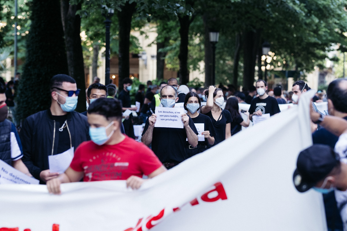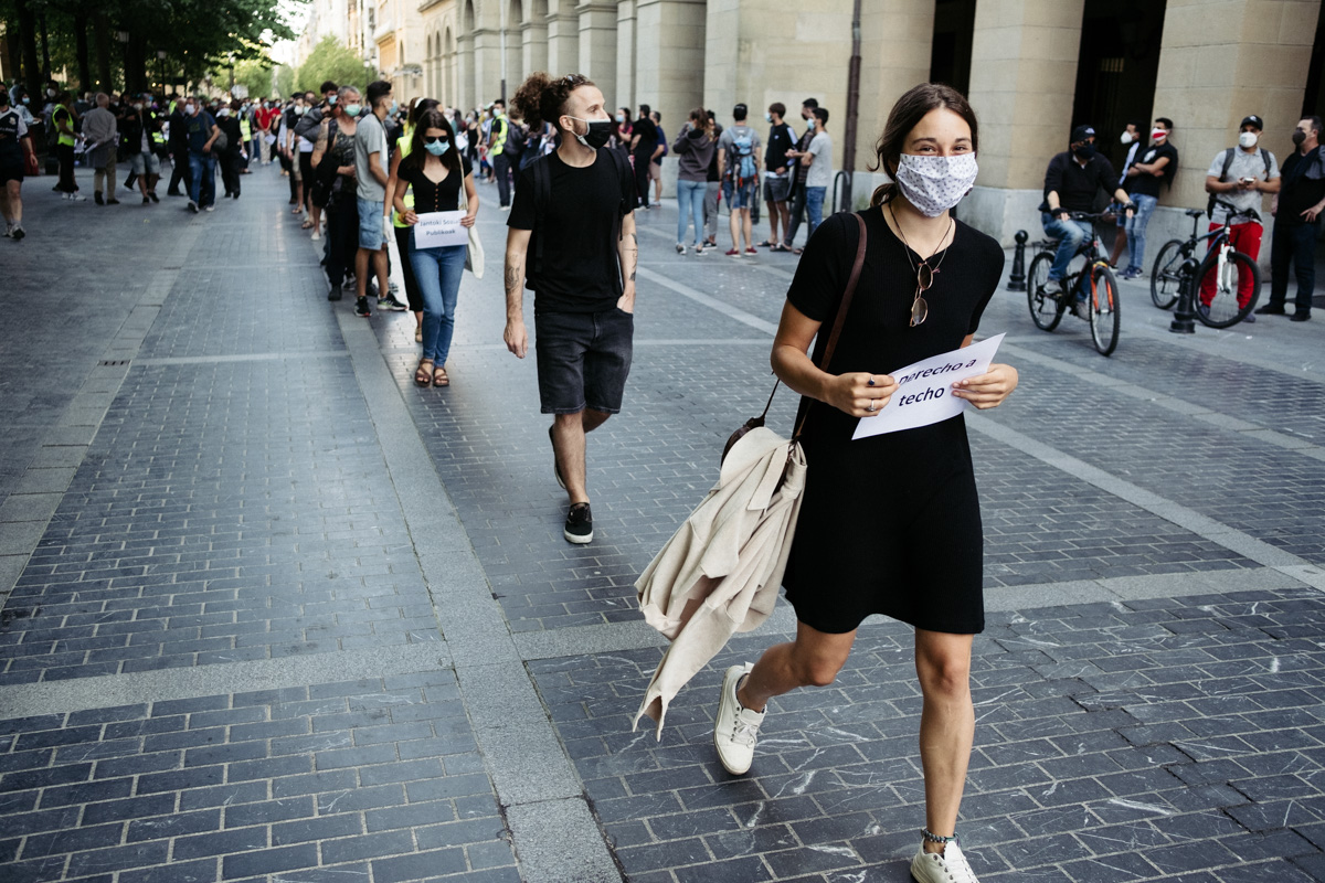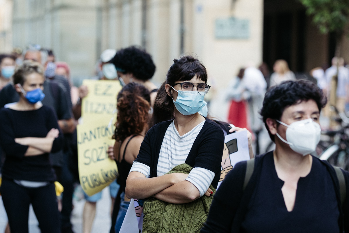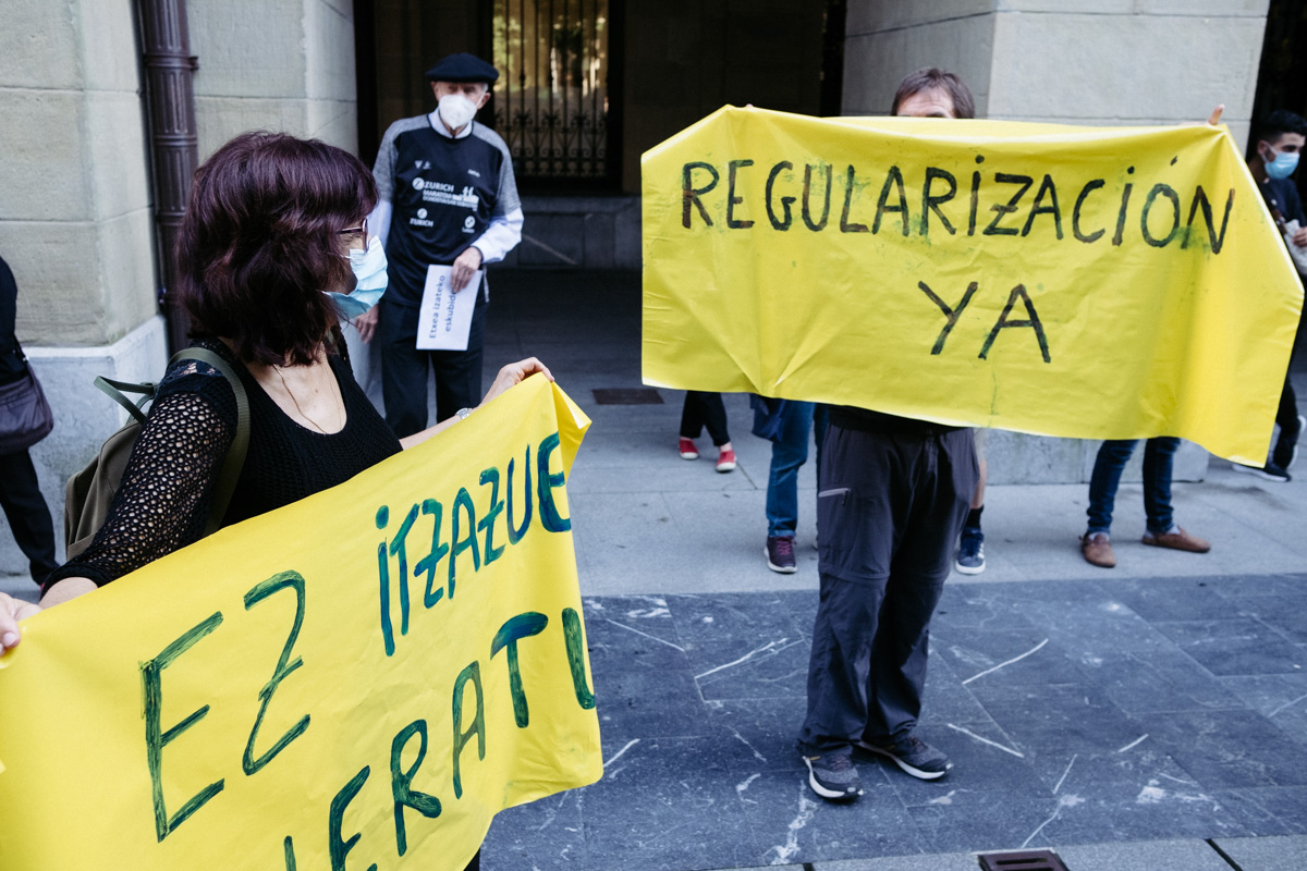 La Red Ciudadana de Acogida de Donostia fue muy secundada ayer en la formación de una cadena humana que partió de la Diputación en dirección al Ayuntamiento para solicitar a las instituciones que no dejen en la calle a las personas sin techo que han estado alojadas en los recursos habilitados con motivo del confinamiento. La red también pide reforzar los equipos profesionales y los servicios sociales y habilitar comedores sociales públicos en favor de este colectivo.