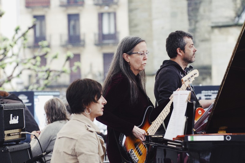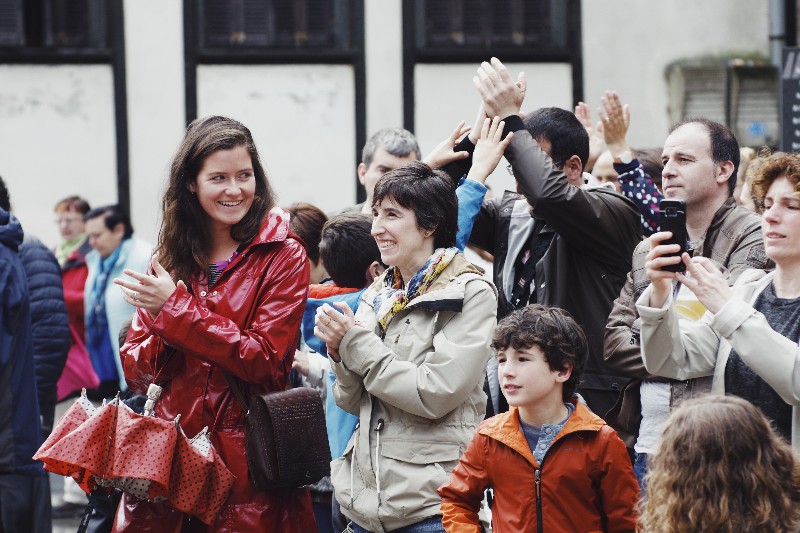 Los integrantes de Zirriborro Jazz Band comenzaron la mañana en la plaza Zuloaga con mucha ímpetu. A esas horas de la mañana había poca gente en la plaza, pero la lluvia cesó y la gente empezó a acercarse a los conciertos de Igara Roosters y Mojo Handen, a la actuación de poesía y piano de Soinuaren Olatuak y a disfrutar de la actuación de Canto Moderno. Pero, sin duda, la actividad más éxitosa fue Hiria Dantzatzeko de la asociación cultural Axuri Beltza, que llegó la plaza. Más tarde fue el turno de los musicales del Gazteleku y del grupo +55 de Bidebieta y de Malecón Latino.