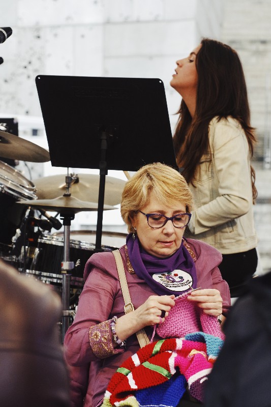 Las integrantes de Harituz fueron recibiendo trozos de bufanda tejida por diferentes agentes durante estas últimas semanas y así han logrado (por ahora) que la bufanda («madejas contra la violencia sexista) mida cuatro kilómetros.