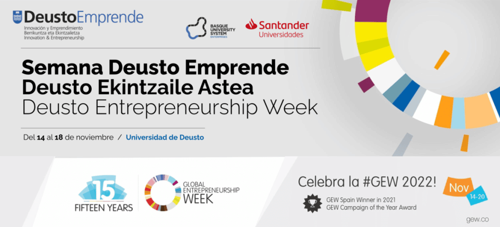 Tras haber sido galardonada como embajadora de la Semana del Emprendimiento en el País Vasco para esta nueva edición 2022, la Universidad ha organizado más de 30 actividades y dinámicas participativas para acercar la figura de la persona emprendedora al alumnado y fomentar ese espíritu.