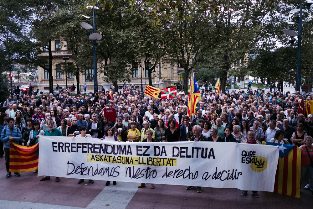 En esta tesitura EH Bildu ha llamado al pueblo vasco para que participe en todas las movilizaciones que se convoquen para demostrar no solo su solidaridad con el pueblo catalán, sino para reivindicar también la libertad de todos los presos y la vuelta de los exiliados, y la defensa del derecho de autodeterminación de los pueblos.