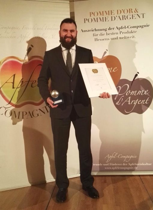 En la noche del pasado sábado se celebró la entrega de premios Pomme D’Or y Pomme D’Argent. Un evento en el que se hizo entrega a Sidras Bereziartua de este nuevo galardón, que es ya el cuarto que consigue la marca sidrera gipuzkoana en la Feria Internacional de Sidra de Frankfurt.