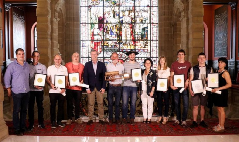 Este mediodía se ha llevado a cabo en la Sala del Trono del palacio foral el reparto de premios del ‘XVIII Concurso de Sidra. Premios Diputación Foral de Gipuzkoa’. La sidrería Isastegi de Tolosa ha resultado ganadora entre las ocho finalistas, y el jurado ha puesto en valor la calidad analítica y organoléptica de la sidra elaborada por dicha sidrería. Al acto han asistido el diputado general en funciones Markel Olano, la diputada de Promoción Económica, Medio Rural y Equilibrio Territorial en funciones, Ainhoa Aizpuru, y los representantes de las sidrerías participantes en el concurso.