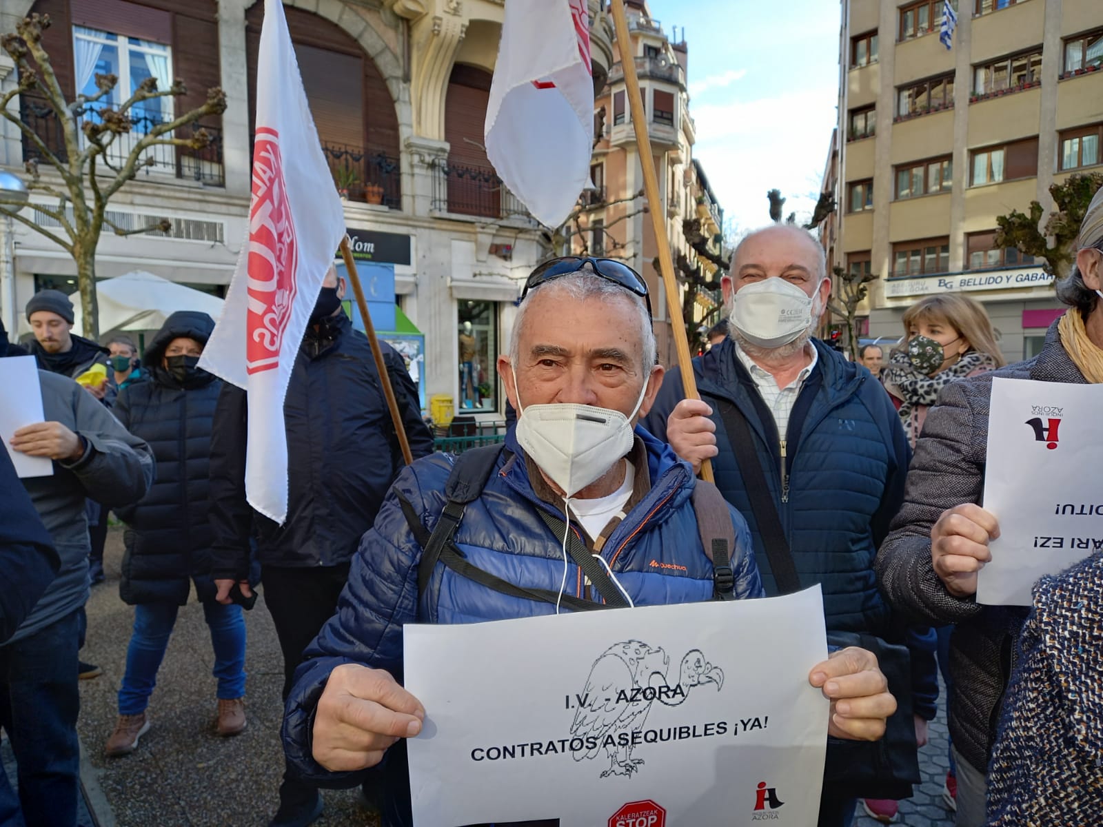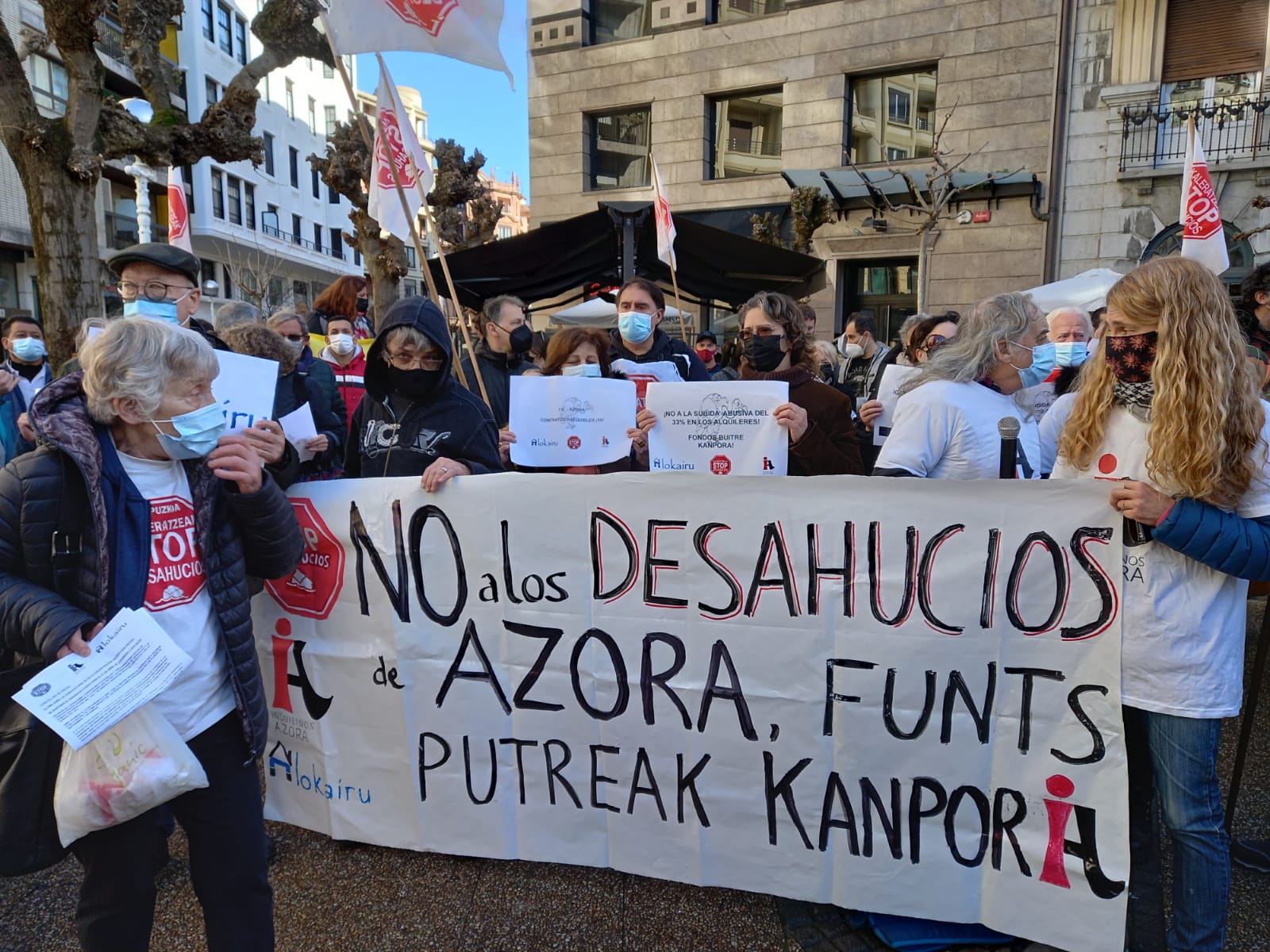 Hoy en la plaza Pinares de Gros se ha visto que la situación de incertidumbre de los 300 inquilinos de Azora en Donostia es compartida por parte importante de la ciudad. LAB, ESK y CCOO han participado en las nutrida protesta y con ellos representantes institucionales de EH Bildu y de Elkarrekin Podemos así como ciudadanía en general.