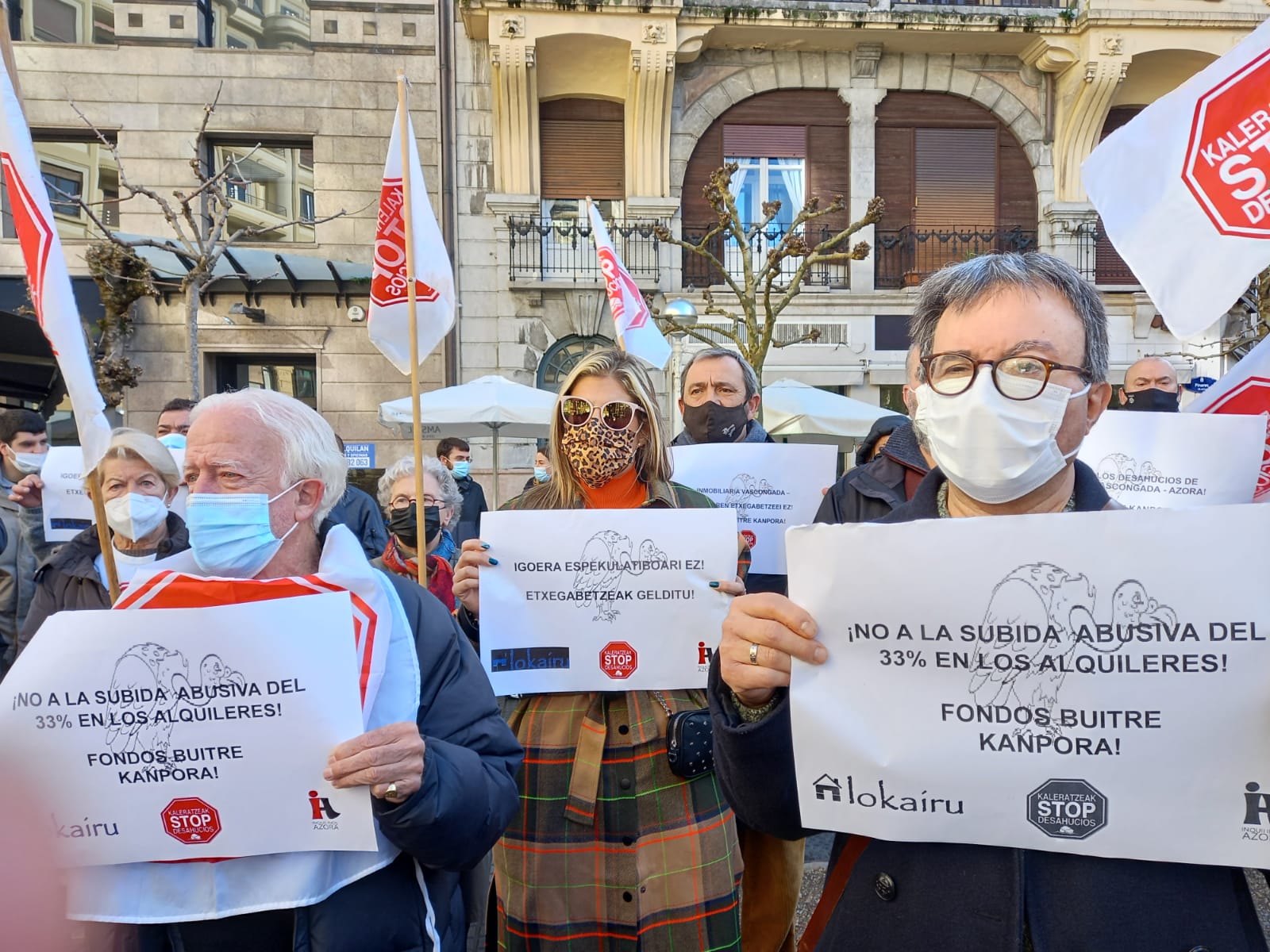 Además de la situación de Alejandra, cuyo desalojo está suspendido pero queda pendiente la negociación, y del desahucio previsto para Iñaki y Rosa Mari, hay diez familias con contratos que han ido finalizando y deberán asumir el 33% de la subida de los alquileres o abandonar sus casas. Extremo que Stop Desahucios, Alokairu Benta Berri e Inquilinos Azora no aceptan más allá de que «ya hay familias que se han ido», como ha dicho Setién. Y no descartan organizar piquetes.