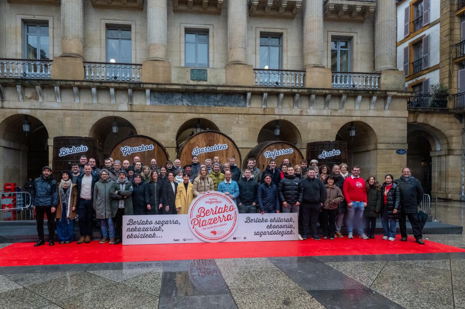 Los datos se han presentado en la Plaza de la Constitución de San Sebastián en un acto conjunto en el que han participado sidreros de Gipuzkoa, Bizkaia y Álava junto a representantes de Navarra y del País Vasco Norte. El sector está dando pasos reales para ampliar la Denominación de Origen a Iparralde y, una vez consolidado ese proceso, incorporar también a Navarra, con el objetivo de construir un espacio común de producción de manzana y sidra.