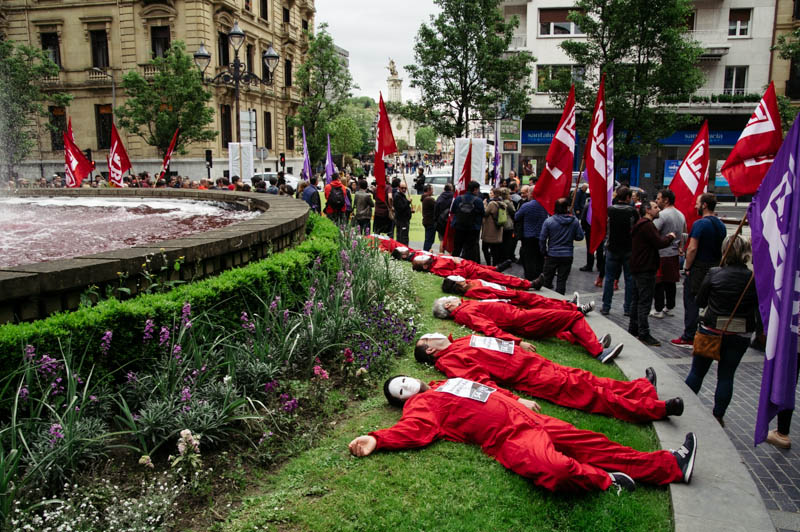 En la víspera del Día de la Salud Laboral, además de denunciar las muertes por accidentes laboral, el sindicato LAB ha querido centrarse en la realidad de «las enfermedades profesionales que siguen siendo invisibles, son las grandes olvidadas». En la movilización que se ha celebrado en la plaza Bilbao los representantes de LAB han recordado que «por cada muerte en accidente laboral se producen 18 muertes derivadas de enfermedades profesionales, pero como sus consecuencias no son instantáneas, se infradeclaran y se ignora la necesidad de combatir los riesgos que las provocan».