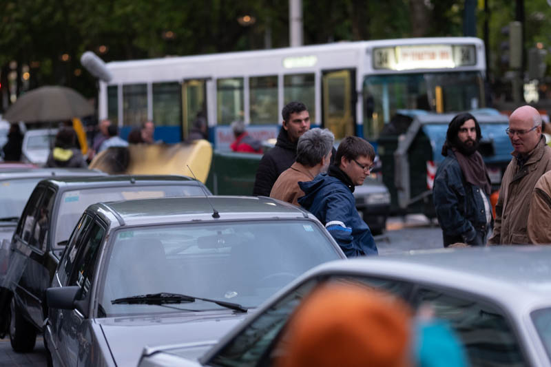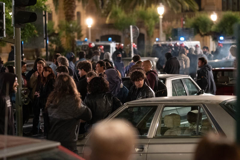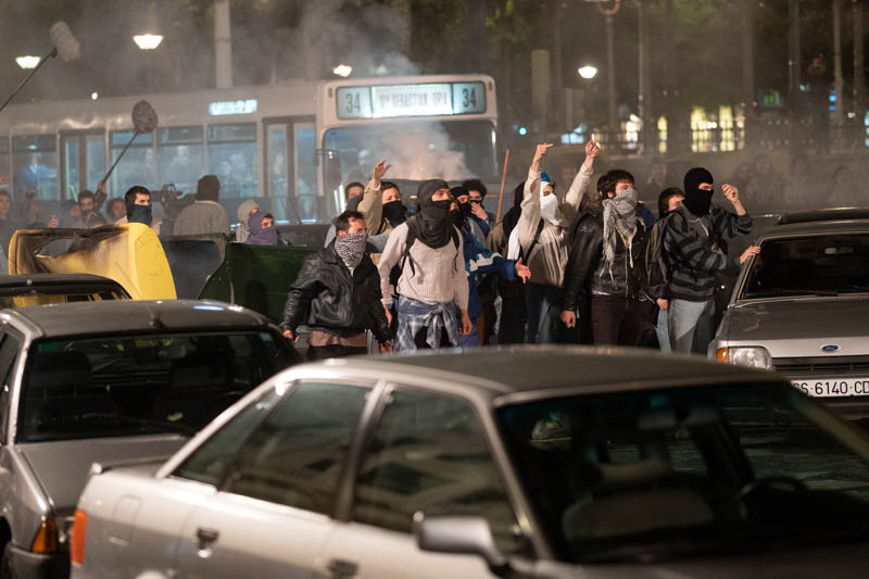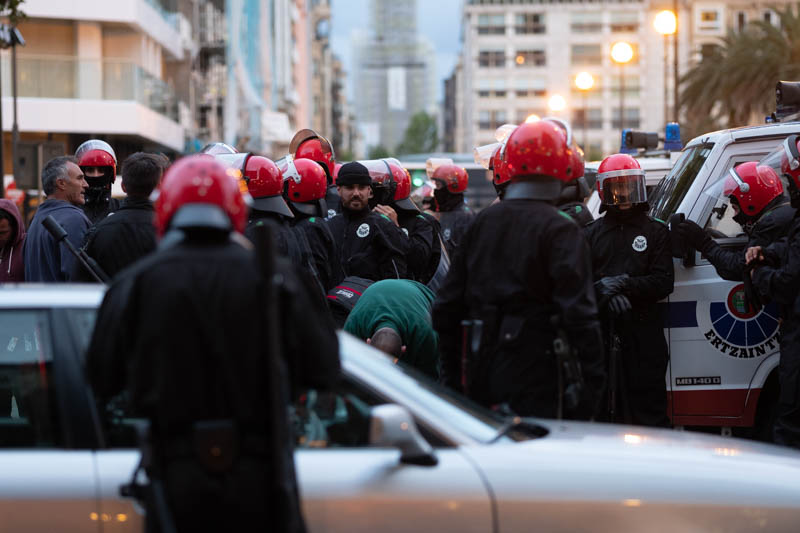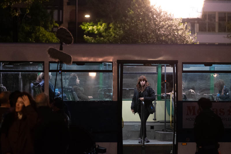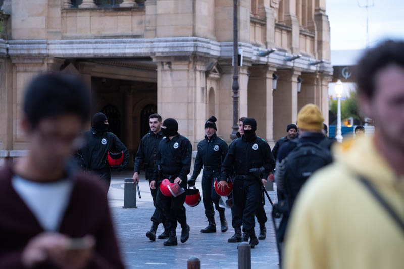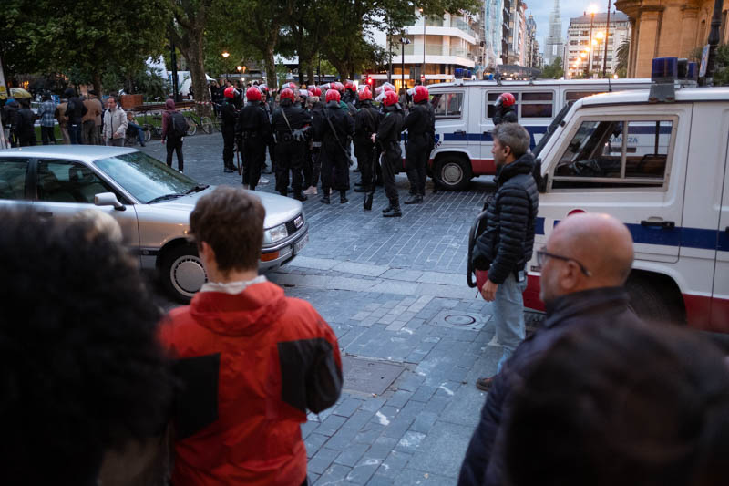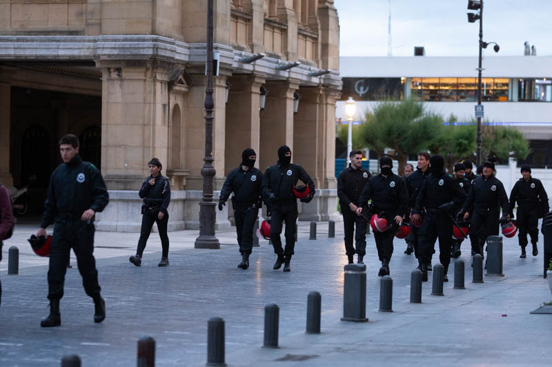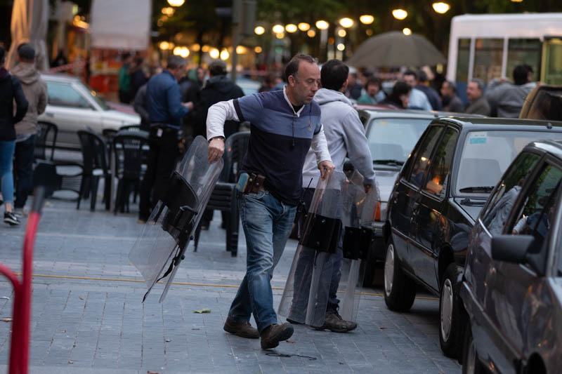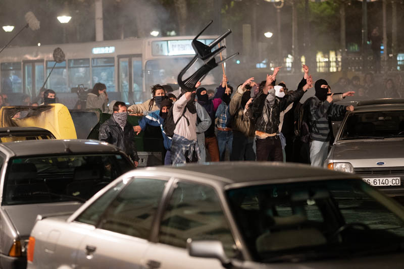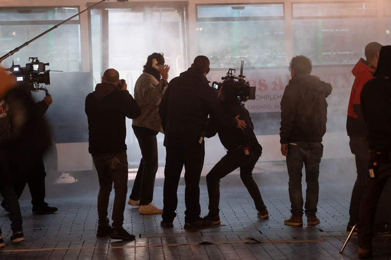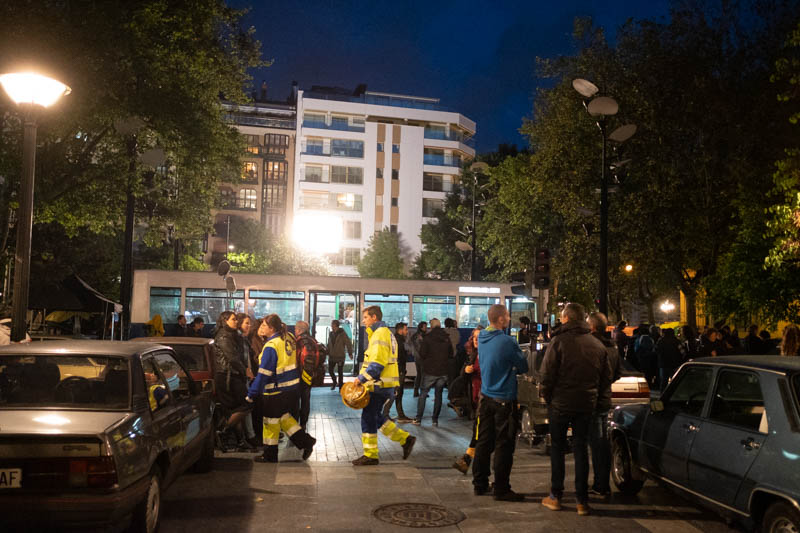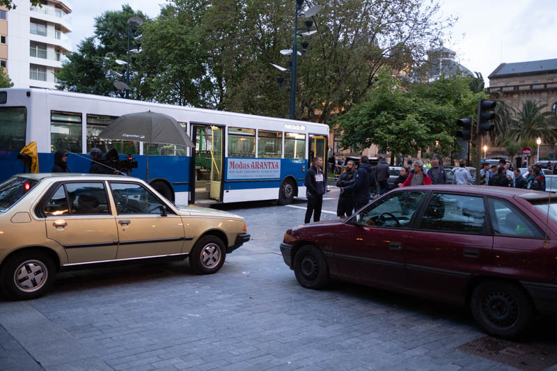 Muy larga ha sido esta noche en el Boulevard para actores, figurantes y equipo técnico de ‘Patria’, que desde el anochecer del miércoles hasta casi el amanecer han recreado tiempos muy recientes en la ciudad a base de imágenes de manifestaciones, carreras y quema de contenedores. En este caso incluso estaba prevista ya a última hora que se prendiera fuego un autobús. Todo para hacer creíble la serie basada en la novela de Fernando Aramburu sobre la historia de ETA, que se está fraguando rodaje tras rodaje en San Sebastián, Elgoibar y Soraluze.