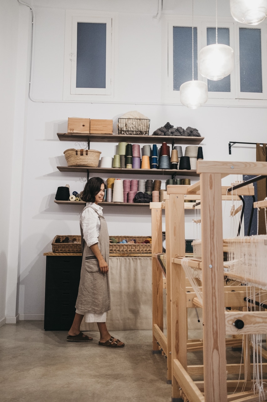 Y aunque la marca se encuentra en pleno proceso de crecimiento, Ana lo tiene claro. Ella quiere transmitir su entusiasmo por el telar y convertir en forma de vida su profesión. Y digo transmitir porque en este periodo de tiempo se ha dado cuenta que le gusta enseñar a tejer. Esta nueva faceta le viene de los talleres que imparte en su espacio. Talleres donde se aprende la técnica del telar y cada alumna crea bolsos, alfombras, tapices y un sinfín de cosas con una tela creada por ellas mismas. Ella cree y busca a la persona que aprecie el trabajo que hay detrás de cada una de sus piezas.