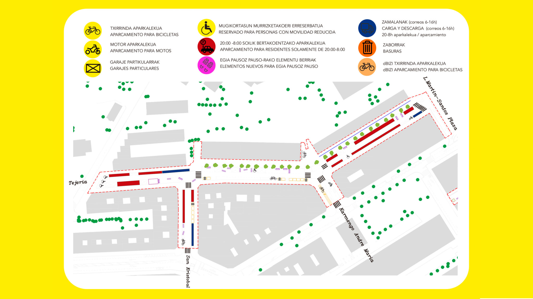 Para poder llevar a cabo la iniciativa, durante las semanas del 12 al 25 de abril no se podrá circular o estacionar en las calles Tejeria y San Cristobal, salvo en los siguientes supuestos: estacionamiento de vehículos exclusivo para residentes de la zona 2-3 de 20:00h a 8:00h en la calle Tejeria. Carga y descarga de 8:00h a 13:30h en la calle San Cristobal y Correos de 6:00h a 16:00h. Vehículos autorizados de las actividades situadas en estas calles. Tránsito de propietarios de garajes particulares. Estacionamiento de autorizados en plazas reservadas para personas con movilidad reducida (24h).