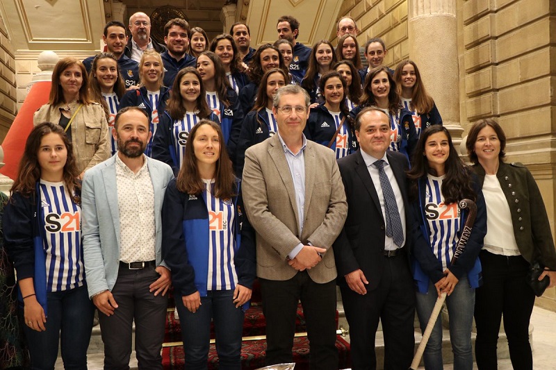 La corporación municipal recibió ayer al equipo femenino de hockey hierba de la Real Sociedad. Las donostiarras se proclamaron campeonas de liga el pasado fin de semana en Barcelona tras vencer los dos partidos de la Final Four en los shoot-outs.