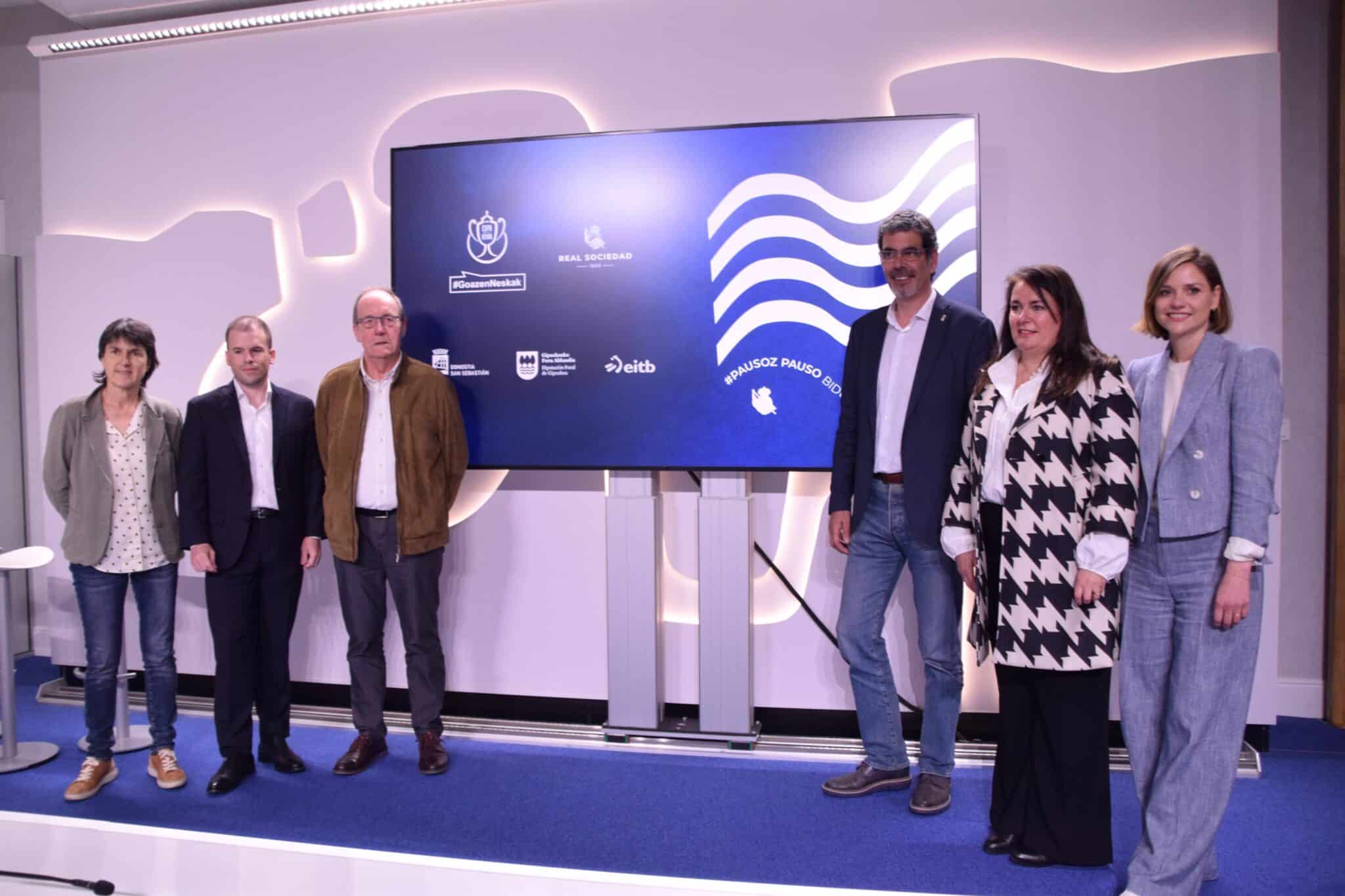 La sala de prensa del consistorio donostiarra ha acogido esta mañana la presentación de las diferentes iniciativas que las instituciones públicas – Ayuntamiento de San Sebastián, Diputación Foral de Gipuzkoa, Gobierno Vasco y EITB – y la Real Sociedad organizarán para que ese día la ciudad y toda Gipuzkoa se vuelque con el equipo femenino de la Real Sociedad.