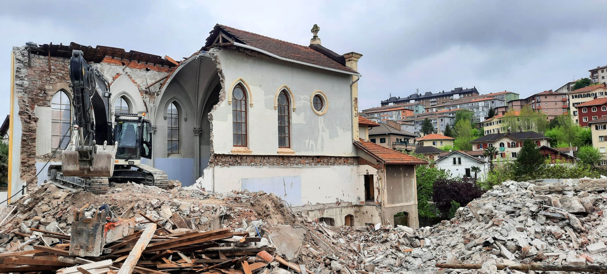 El barrio de Ategorrieta acaba de perder uno de sus conjuntos característicos, Villa Elvira y su capilla, que fue hogar de las Hermanas de la Esperanza desde el año 1906. «La villa será sustituida por un gran volumen prismático de hormigón (ampliación de la residencia de mayores Aita Etxe) y en el emplazamiento de la capilla se construirá el acceso a un aparcamiento subterráneo», informa Áncora en un comunicado. La Diputación salvo ‘in extremis’ las vidrieras.