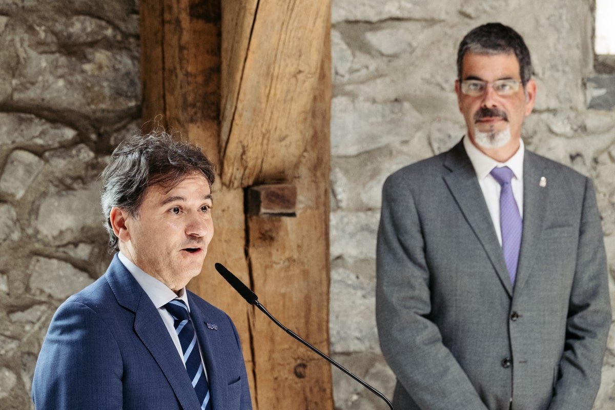 Con motivo de su nueva exposición, que se podrá visitar hasta el 13 de octubre, Chillida Leku ha reunido a representantes institucionales y del mundo de la cultura vasca, en un acto en el que han intervenido la directora del museo, Mireia Massagué, y el presidente de la Fundación Telefónica, Luis Prendes, además del ministro de Política Territorial y Memoria Democrática, Ángel Víctor Torres.