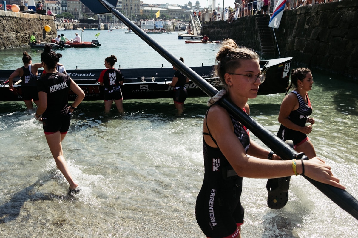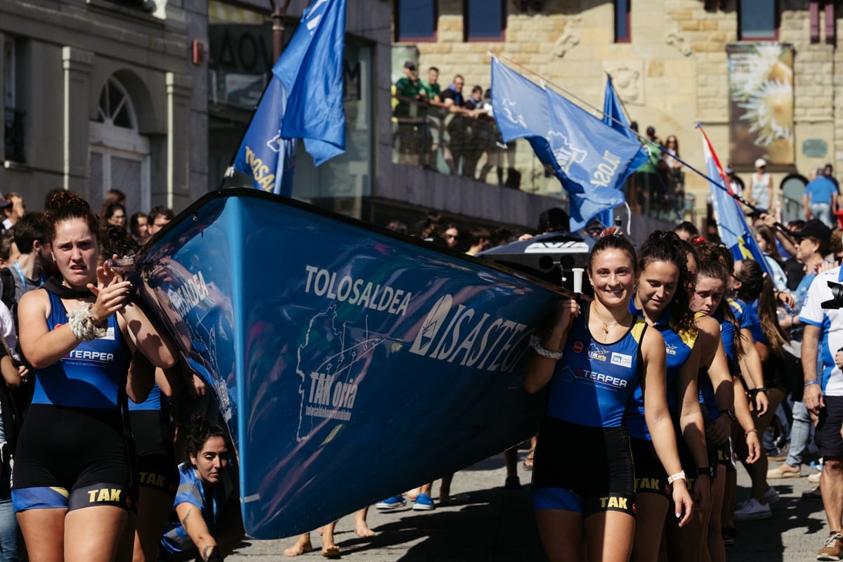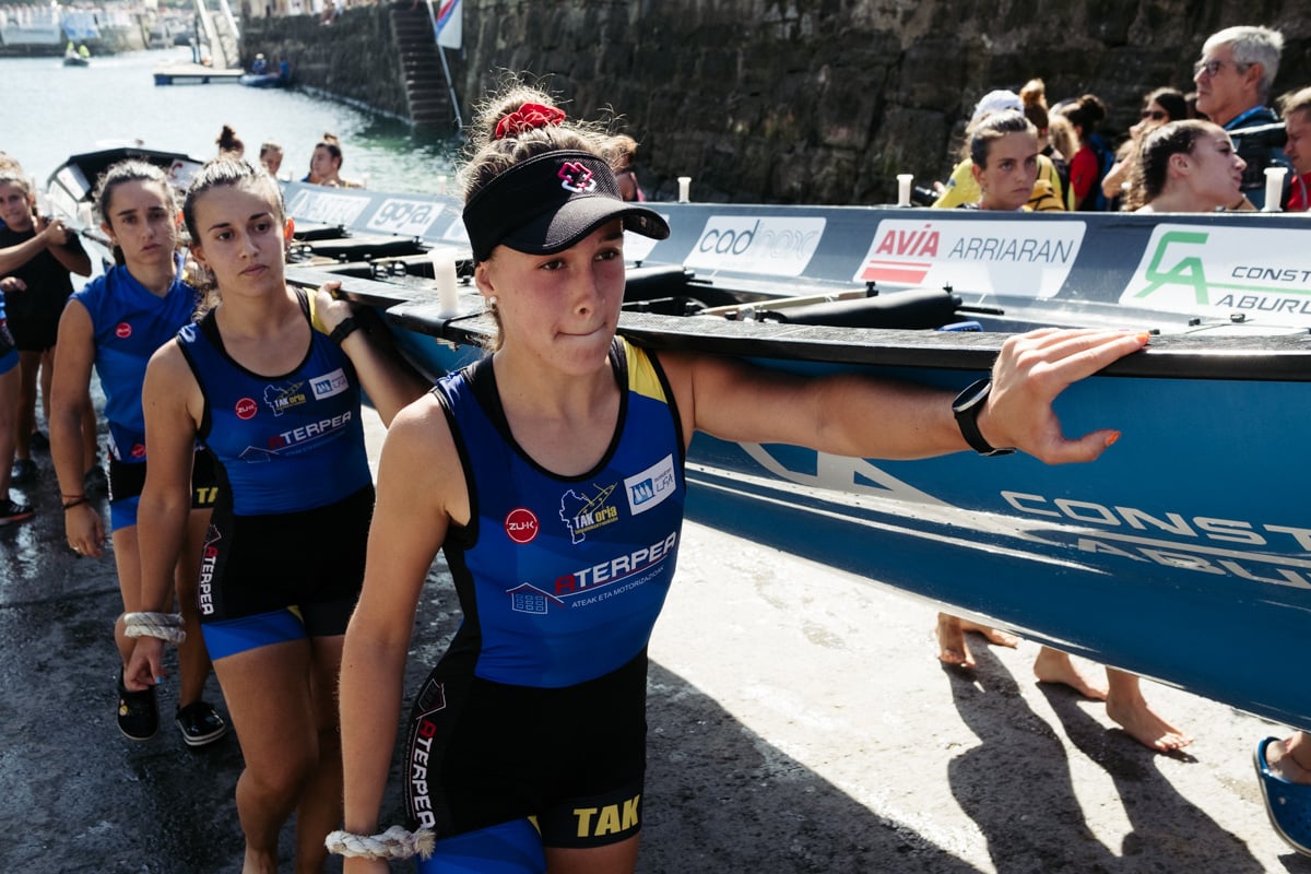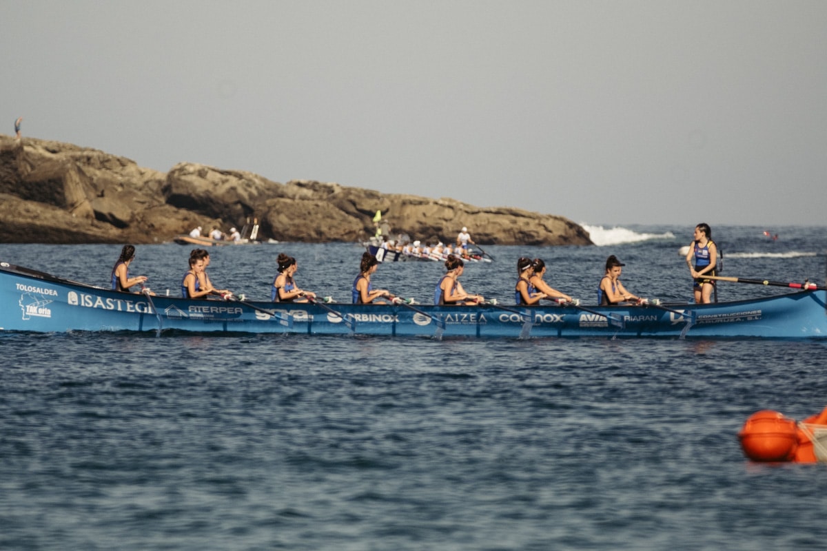 La primera tanda tenía a Tolosaldea como favorita, no en vano era la única del grupo de cuatro que ha bogado esta temporada en la máxima categoría del remo femenino, la liga EuskoTren, pero se encontró con una emergente Hondarribia que le plantó cara.