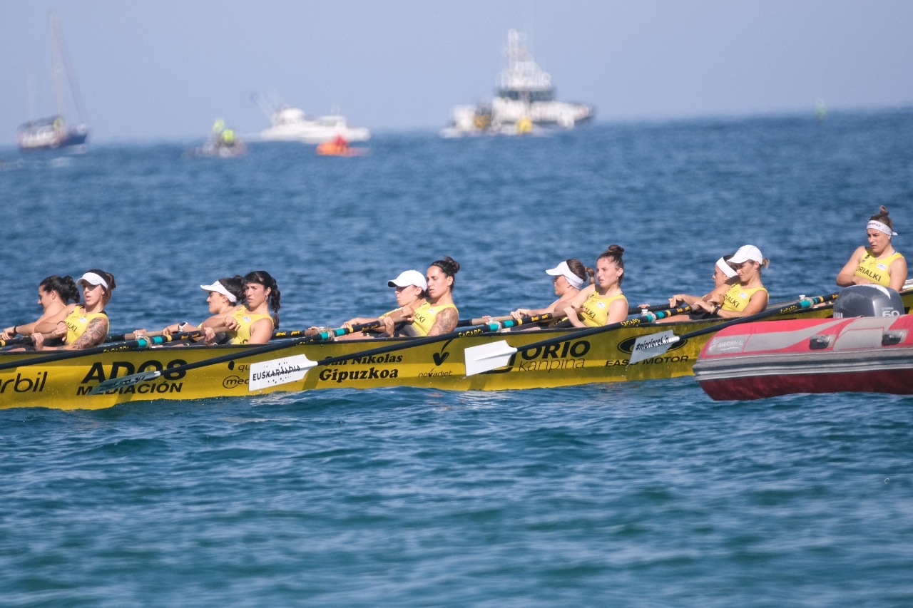 La segunda tanda reunía a tres candidatas al título, Orio, la embarcación de Arraun Lagunak que se presentaba además como ganadora de la clasificatoria del jueves y el otro bote de San Sebastián, Donostiarra, con la gallega Chapela con escasas opciones de sorprender.