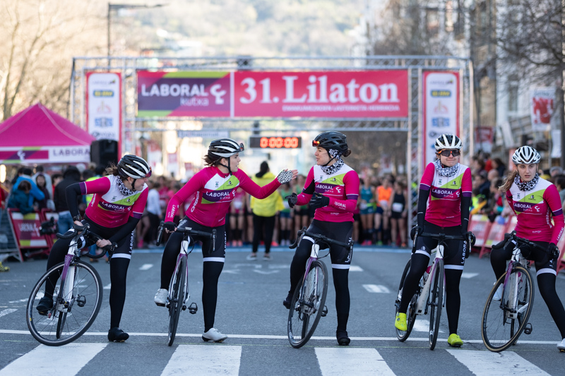 A las 10:30, tras un buen calentamiento y con buena música, ha dado inicio la 31 edición Lilaton al ritmo de Superemakumea, canción de Estibaliz Garrido Dorronsoro. El equipo ciclista femenino de Laboral Kutxa ha abierto el camino.
