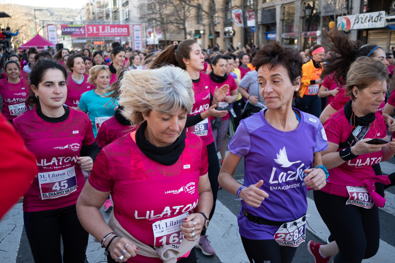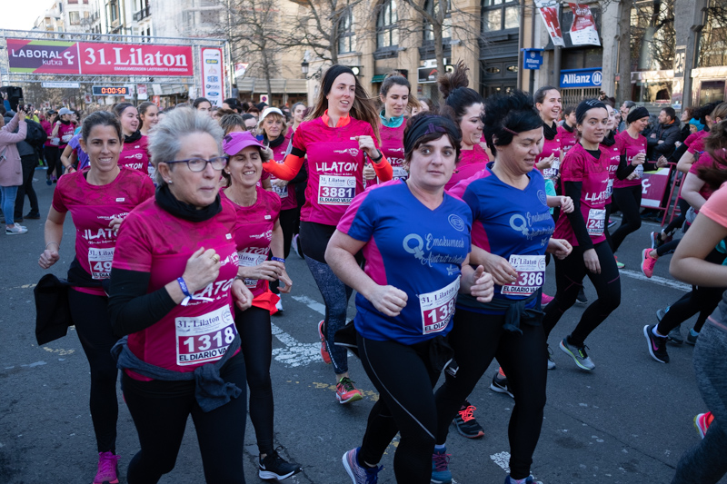 Viendo la estampa de esta mañana en Donostia, lo de menos es si tiene o no sentido a día de hoy una carrera sólo para mujeres. Debate recurrente aún cuando ya han pasado 31 años desde que arrancó la Lilaton de la mano de la Coordinadora Feminista. Y es que lo cierto es que había más de 6.500 inscritas este año porque la respuesta a esta iniciativa comandada por el Atlético de San Sebastián no encuentra techo y crece con soltura y una alegría más propia de las fiestas que de las carreras populares. Y de esas 6.500 la gran mayoría se ha puesto las zapatillas hoy y ha salido a la calle.