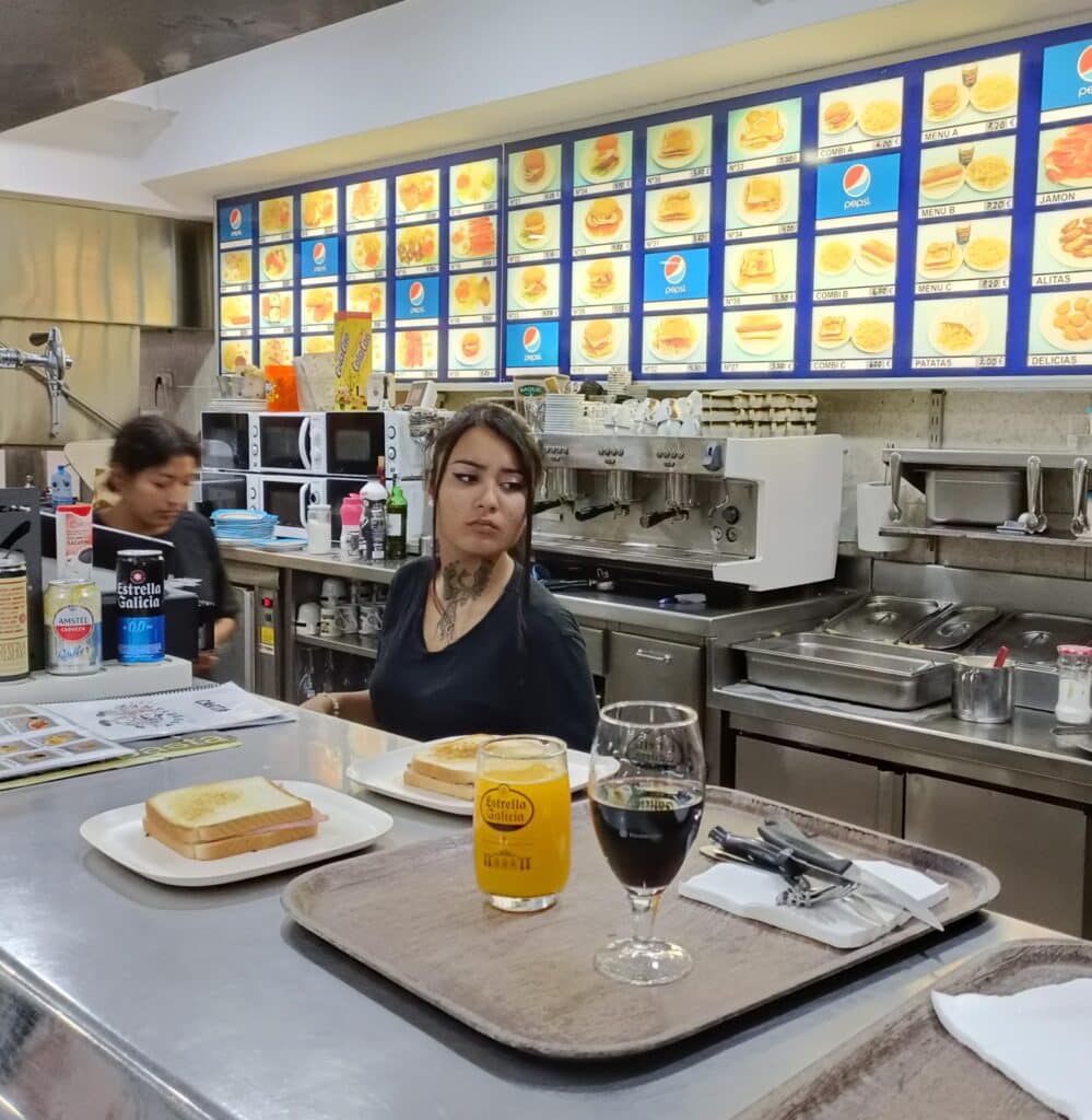 La estética del local tiene su aquel, como si se hubiera detenido varias décadas atrás. A las numerosas fotos en blanco y negro de Donostia, le acompañan varios mensajes e imágenes de gran tamaño que ensalzan la cultura del chocolate. En uno se lee: «…Todo el mundo tiene un precio: el mío, el chocolate». Hay muchas fotos de comida rápida, como si hubiéramos viajado a los años 80 a bordo del Delorean. Son creaciones baratas y poco exigentes que en el luminoso de detrás de la barra tienen los precios escritos a boli: platos combinados de toda la vida, hamburguesas, alitas de pollo, patatas fritas…