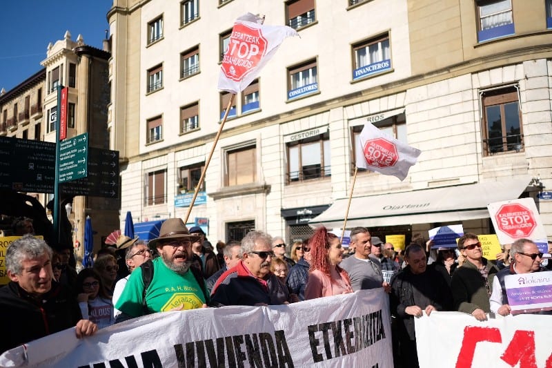 «Además de la salida colectiva pedimos que se firmen contratos de alquiler por siete años y que su subida quede ligada al IPC», ha añadido Rosa García, poniendo como ejemplo el caso de Barcelona, donde la conflictividad respecto a Azora ha llegado muy lejos. «En este momento hay alarma social en Donostia. Esto es muy pequeño».