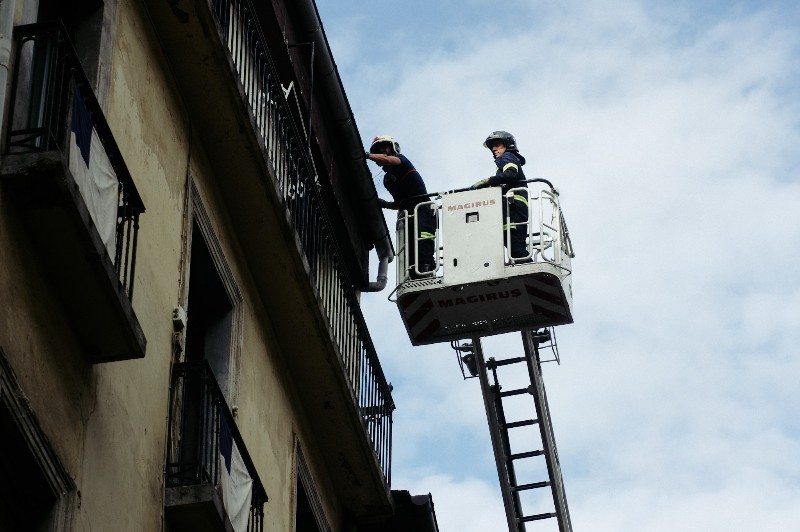 Los bomberos han actuado hoy en la calle 31 de Agosto de Donostia a causa de unas tejas que estaban generando un importante peligro (algunas han llegado a caer) y han tenido que ser retiradas.