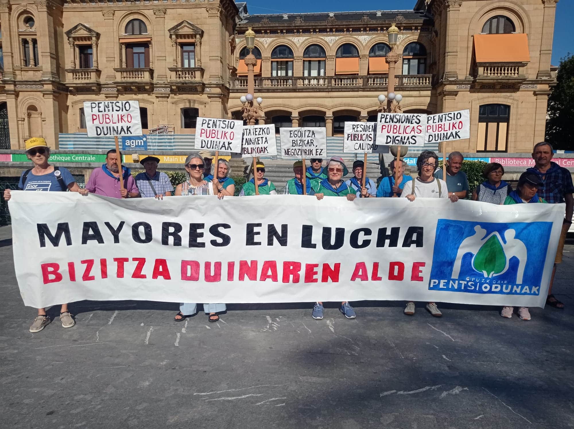 «Mas de 200.000 personas pensionistas en la CAV y Nafarroa viven con pensiones inferiores a 1.080 euros, lo cual no les permite hacer frente a necesidades básicas. El incremento actual del coste de la vida afecta de manera especial a las rentas más bajas; las personas mayores pensionistas tienen cada vez más dificultades para llegar a fin de mes y garantizar una alimentación de calidad, el acceso a los medicamentos y a una vivienda en condiciones climáticas y de movilidad adecuada», denuncia el colectivo.