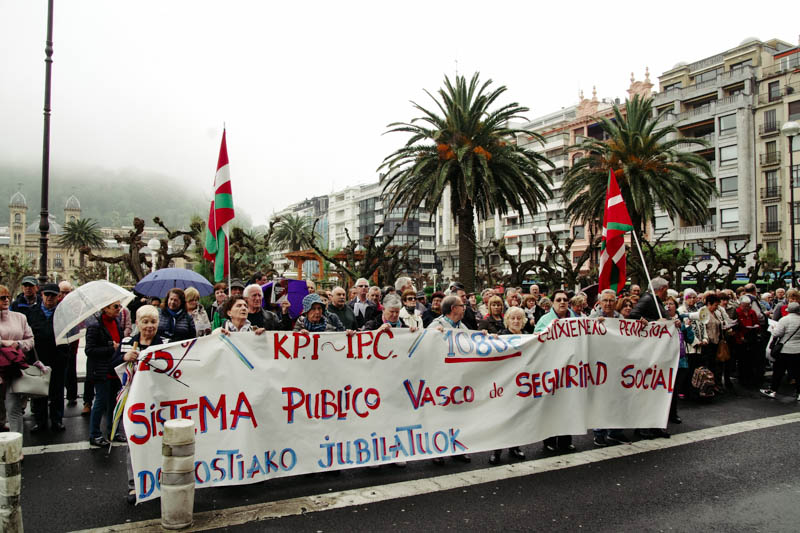 Tal y como decidieron hace unos días los pensionistas gipuzkoanos han vuelto a manifestarse hoy en Donostia, primero ante el Ayuntamiento, después ante la sede del Gobierno vasco, para reivindicar pensiones dignas y pedir apoyo social para las manifestaciones previstas los días 5 y 26 de mayo con motivo de la aprobación (o no) de los Presupuestos Generales del Estado.