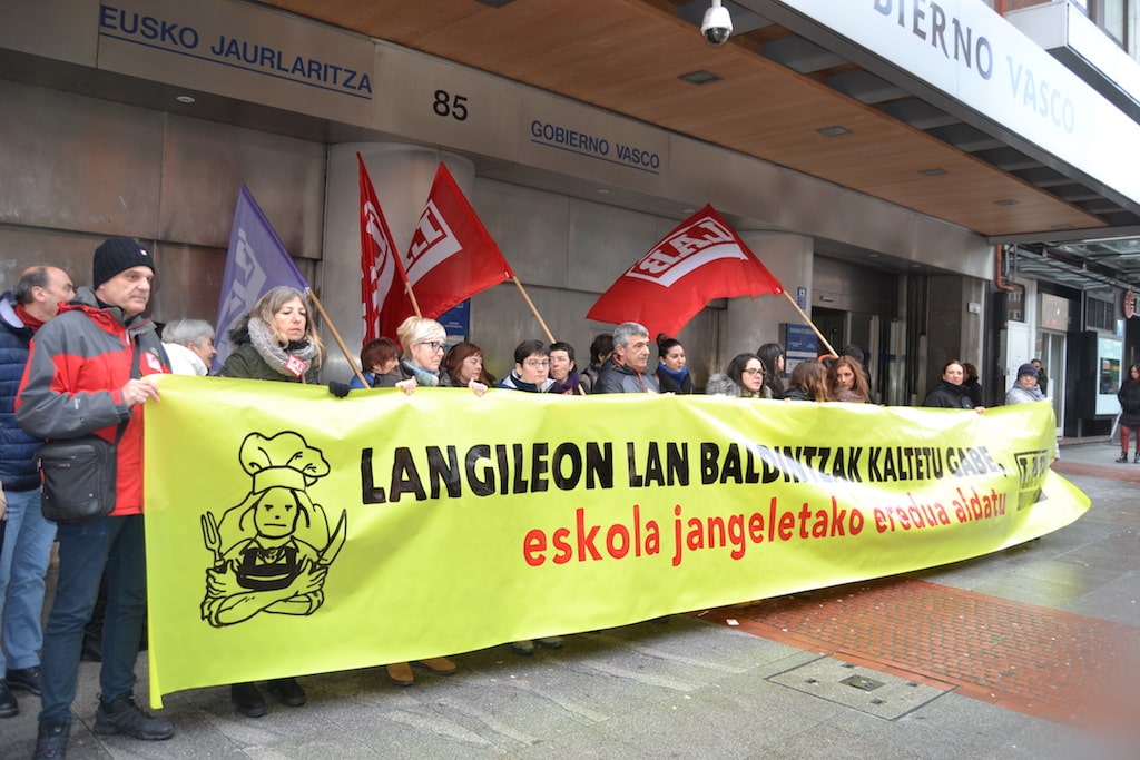 El sindicato LAB pide «comedores en los que prime la calidad y seguridad de la comida, en los que las trabajadoras tengan unas condiciones laborales dignas y que pongan en el centro las necesidades del alumnado. Pero para ello hay que cambiar cuanto antes el actual modelo de gestión».