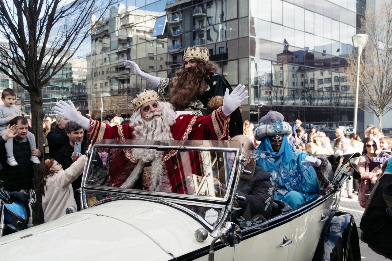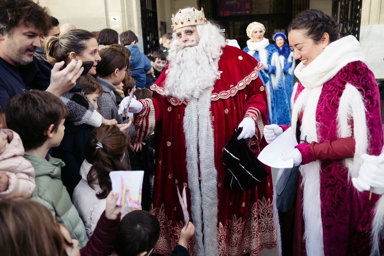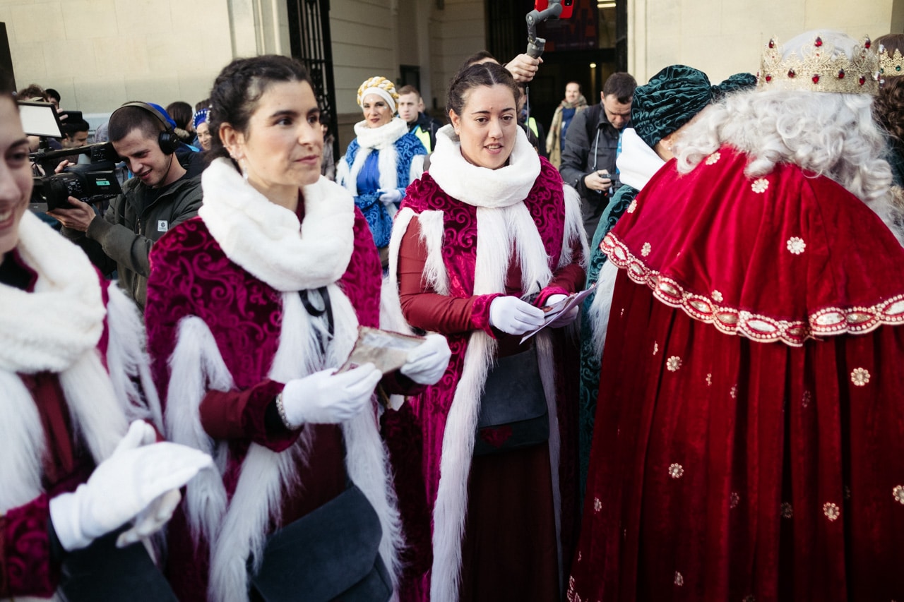 Garpar, Melchor y Baltasar ya son protagonistas en Donostia, donde han saludados a los más madrugadores desde el balcón de Tabakalera. A pesar del ajetreo que tienen esta próxima noche, los Reyes Magos quieren aprovechar el día en San Sebastián y apenas se han guardado algún rato para descansar.