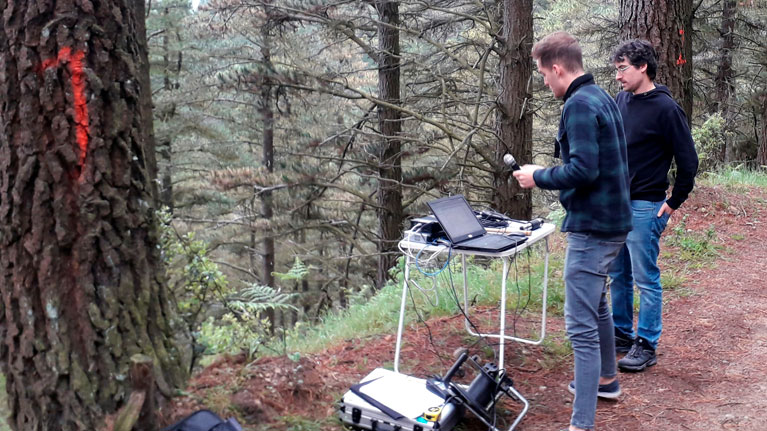 “Medir la frecuencia del sonido sería el equivalente en la madera de los árboles a medir la temperatura del cuerpo de las personas”, explica Jon Ander Sarasua, investigador de Tekniker.