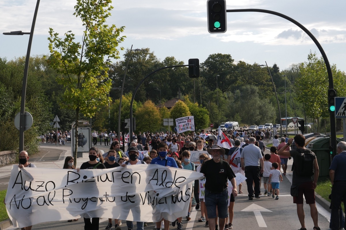 Una manifestación con cerca de 400 personas mostró este sábado en Añorga el rechazo del barrio al plan previsto en el mismo, que incluye la construcción de nuevas viviendas. Según el manifiesto, la construcción de cinco bloques nuevos crearía problemas de movilidad y de espacio de una zona que es tranquila y donde el idioma mayoritario, a día de hoy, según afirman los vecinos, es el euskera.