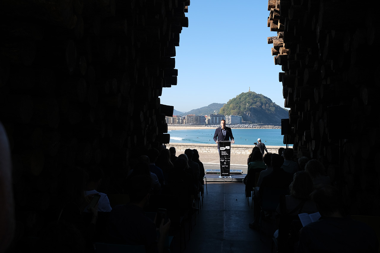 Obra de los jóvenes arquitectos madrileños Julia Ruiz-Cabello y Santiago del Águila, el pabellón, que permanecerá en San Sebastián hasta el 13 de noviembre, ha resultado el ganador entre los 125 proyectos presentados en la segunda edición del festival que organiza el Ministerio de Transportes, Movilidad y Agenda Urbana (MITMA) y la Fundación Arquía.