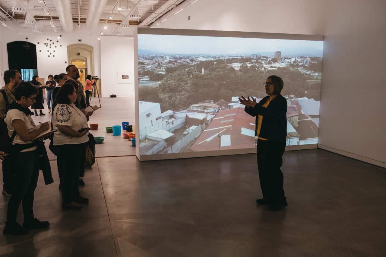 La exposición se articula como un ecosistema dividido en dos sedes que dialogan entre sí. En Tabakalera el visitante se encontrará con obras como Suelo (2001/2025), una instalación que literalmente se mueve bajo los pies del público, o Agua limpia al río (2024–2025), donde la artista recoge agua de lluvia en Costa Rica para hablarnos de los ciclos naturales y la relación con el entorno.