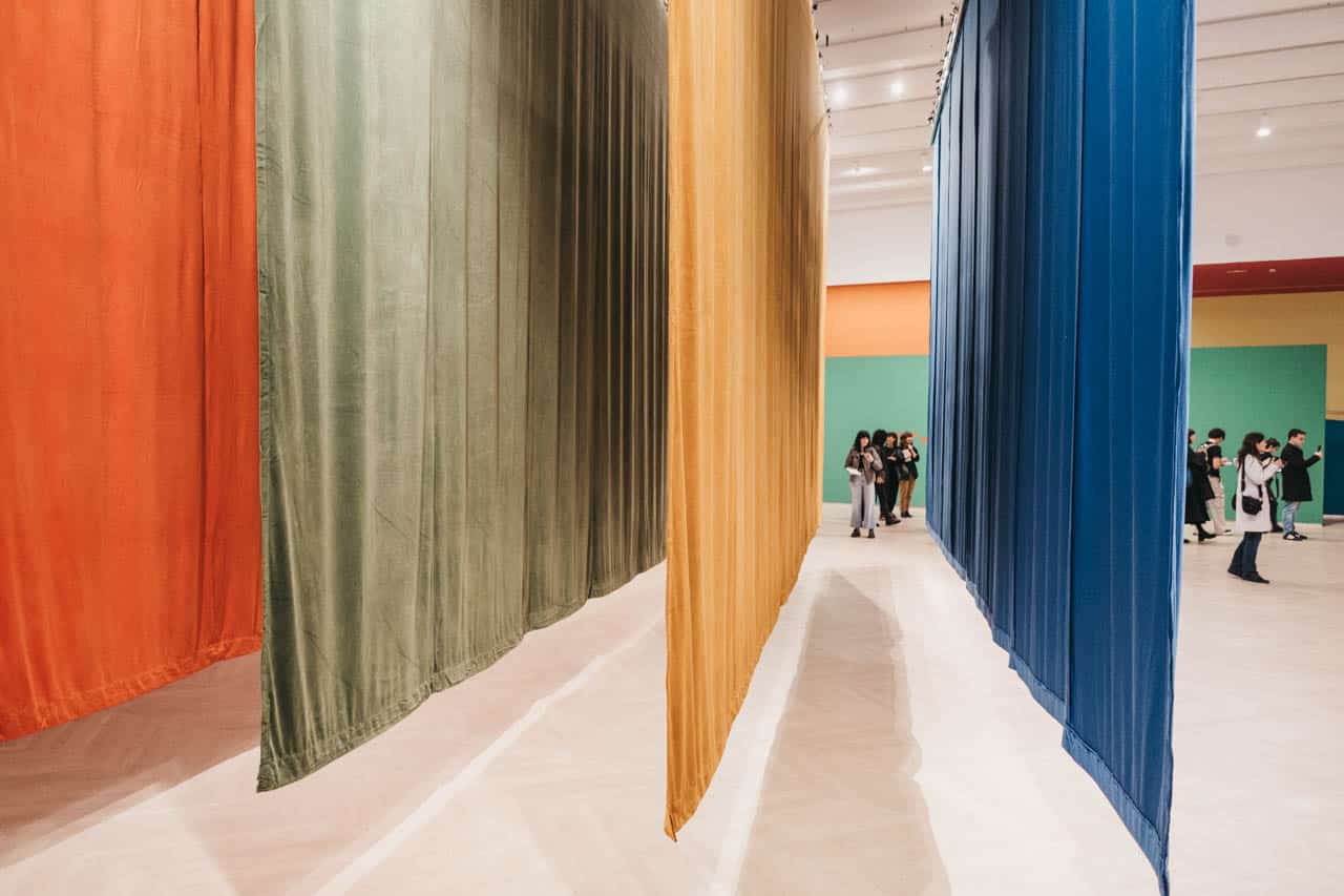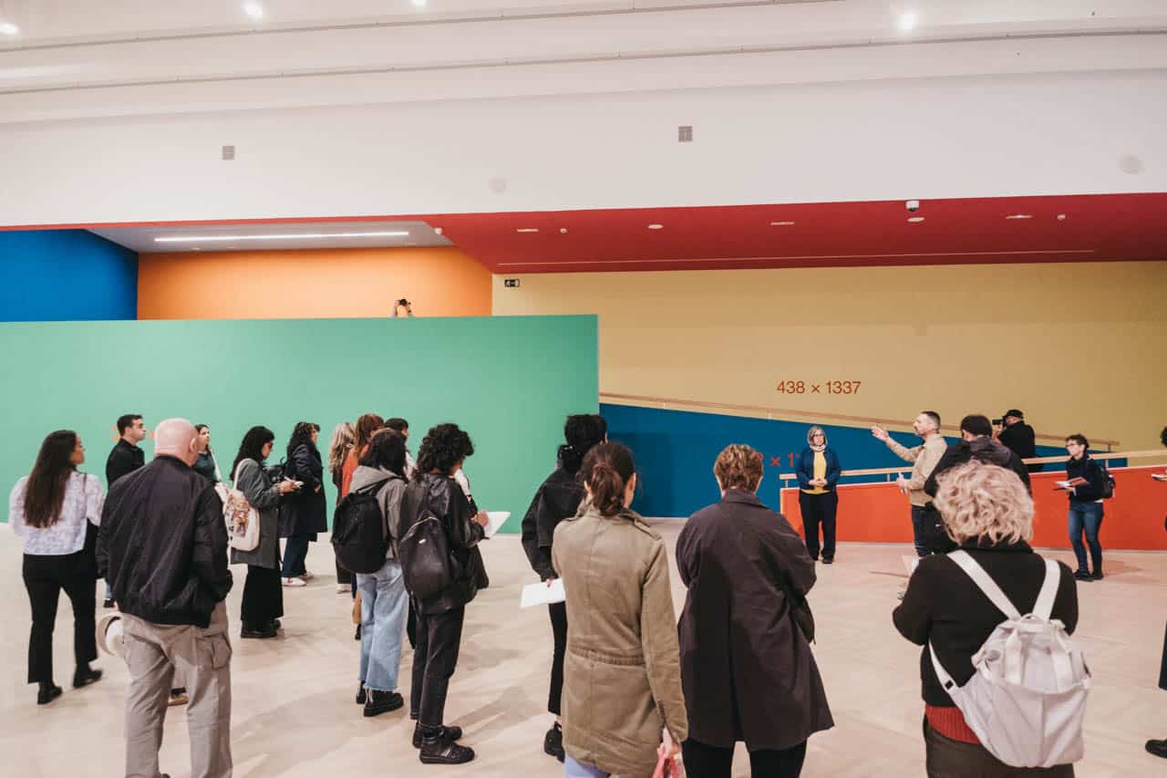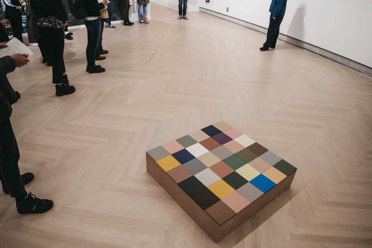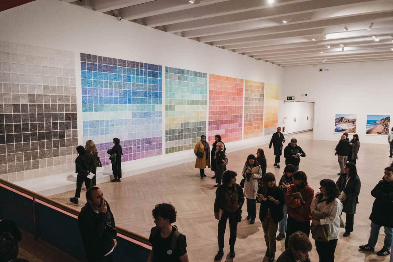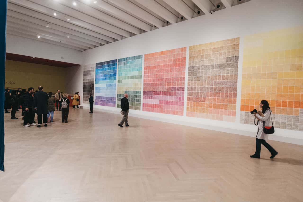 En Kutxa Fundazioa Kubo, en cambio, predominan el color y la escala: proyectos como 366 sillas, Football Field o Caja de 120 lápices de colores (2017–2025) reflejan su investigación sobre el tiempo, el espacio compartido y la percepción.