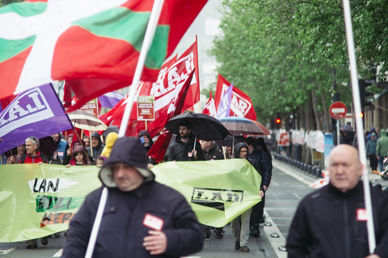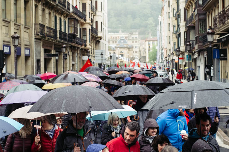 Mañana reivindicativa y lluviosa en Donostia por el 1 de Mayo