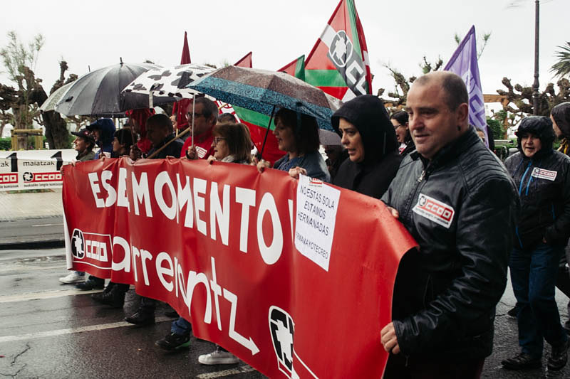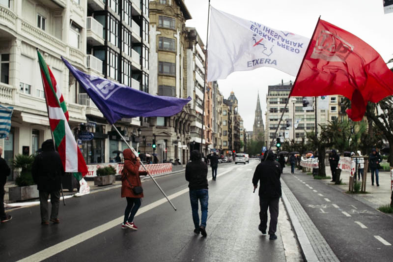 LAB, ELA, las centrales de UGT y CCOO unidas y la CNT por su cuenta han protagonizado las marchas del mediodía, a las que se han unido grupos más modestos para manifestar, todos, que el trabajo que ha comenzado a crearse tras la crisis no es precisamente de calidad y que los contratos a tiempo parcial son los que mandan.