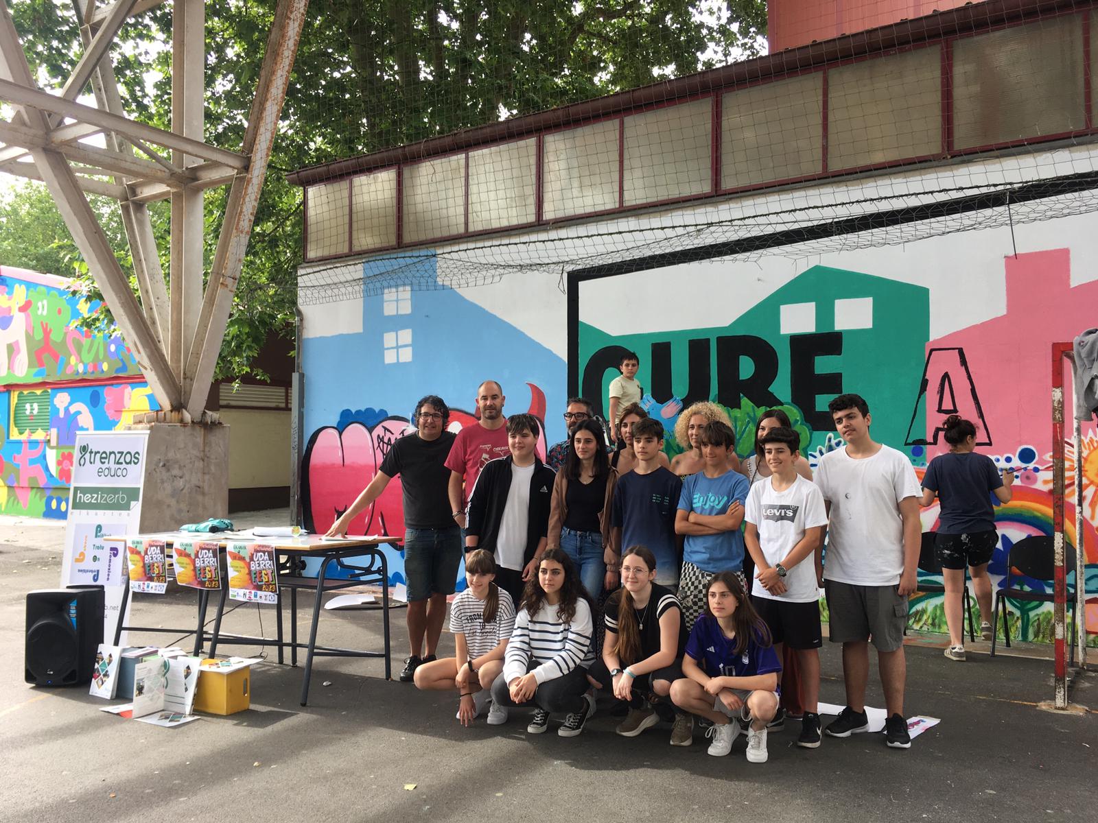 El resultado de este Plan de Buen Trato ha sido plasmado en un colorido mural pintado en una pared del patio del colegio, en cuya concepción y estética han tomado parte alumnos, usuarios del Gazteleku y del cercano centro de acogida Uba, bajo la dirección del artista Garikoitz C. Murua.